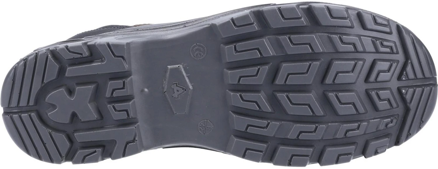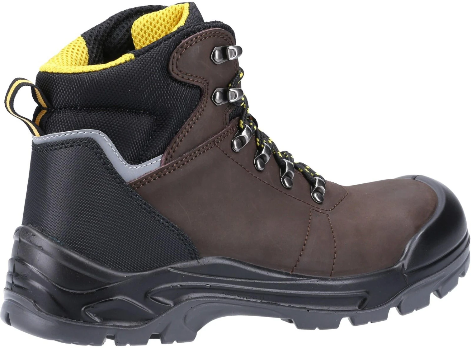 Lightweight safety boot with water-resistant leather upper, heel reflector panel, injected PU scuff cap, steel toe, steel midsole and dual density PU outsole