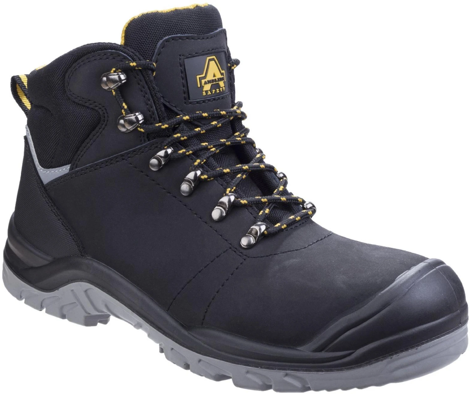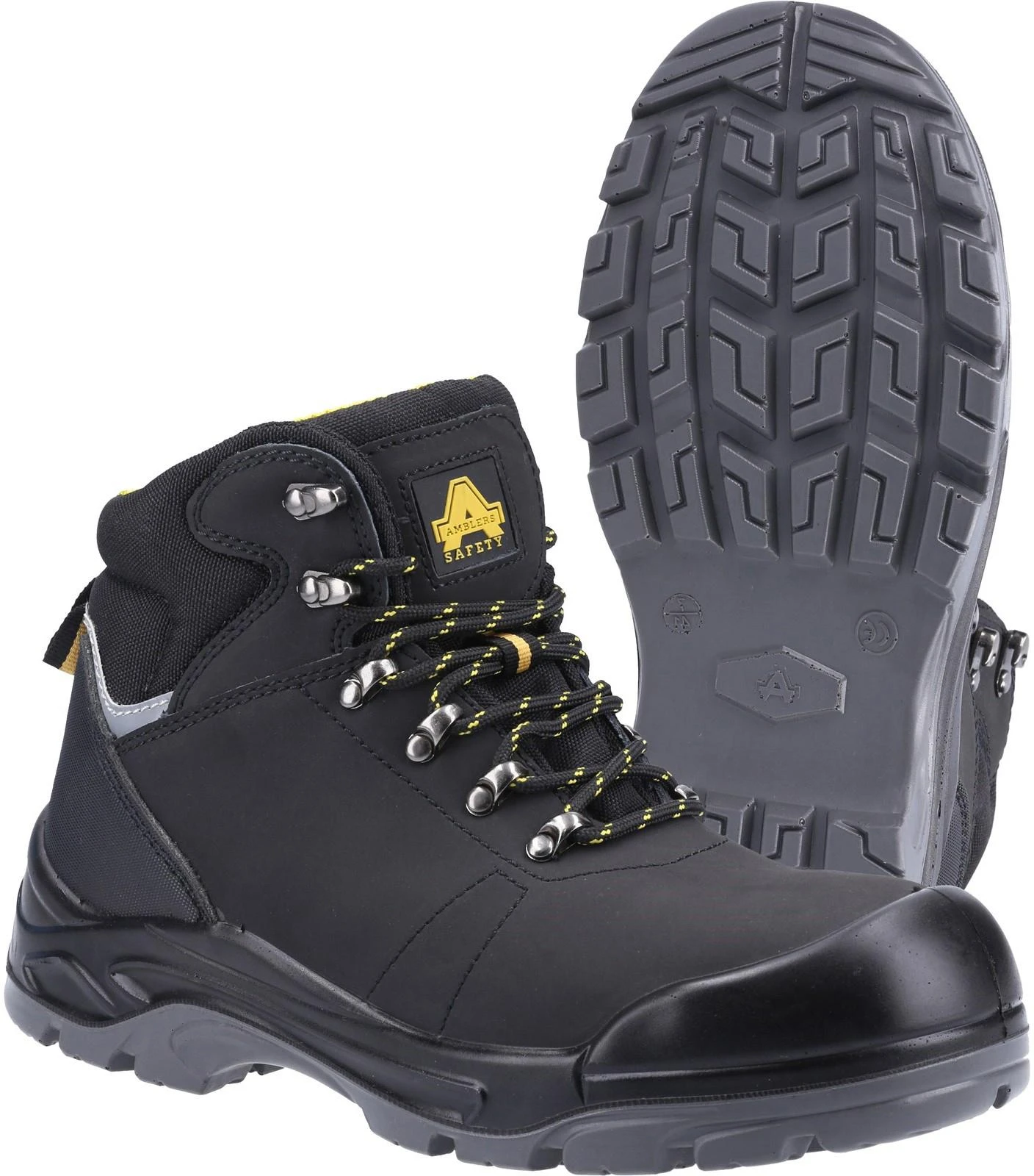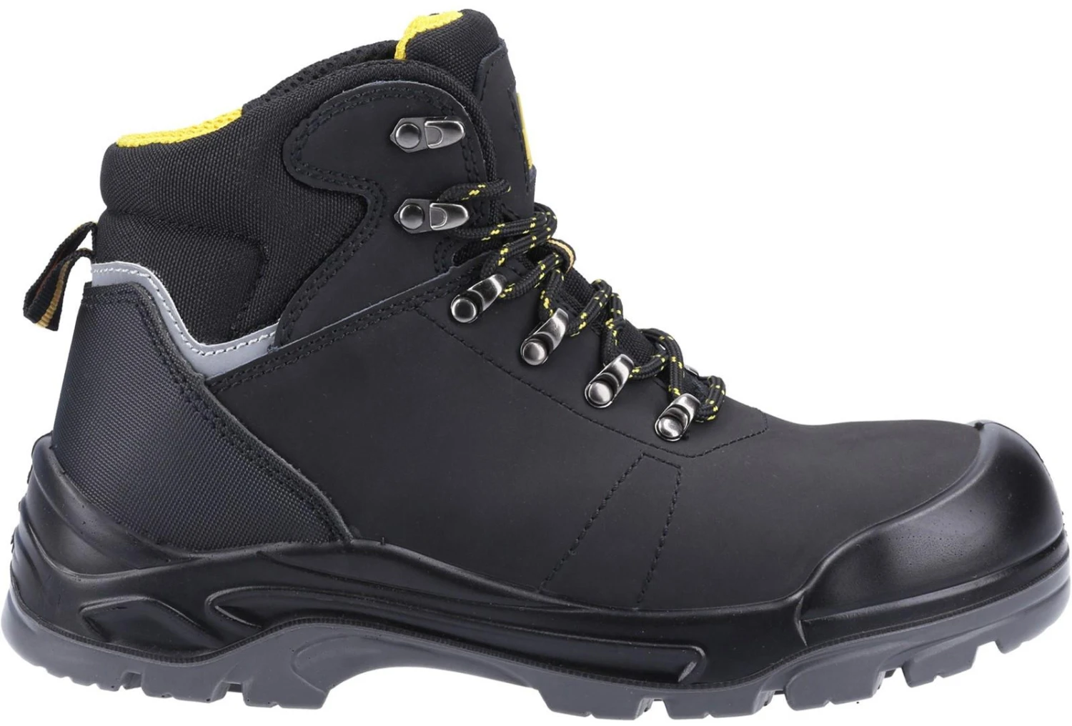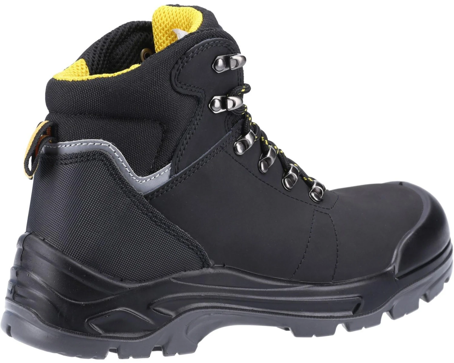 Lightweight safety boot with water-resistant leather upper, heel reflector panel, injected PU scuff cap, steel toe, steel midsole and dual density PU outsole