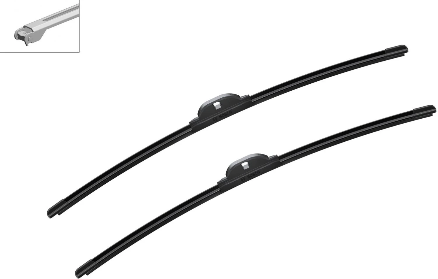 Bosch A016S Wiper Blades – Front Pair like to keep noise to a minimum. Plus, as the set provides clearer and smoother wiping than your conventional blades, you can rely on clear vision even at high speeds. This is all thanks to the built in aerodynamic spoiler and tensioned metal strip which precisely distributes the pressure on the wiping edge just right.