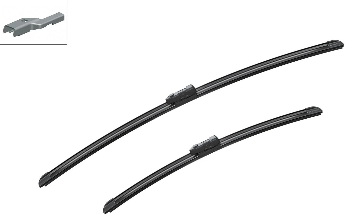 The Bosch A310S Wiper Blade – Front Pair are maximum-performance flat wiper blades providing perfect visibility in any weather conditions and even at high speeds and are easy to fit due to pre-assembled vehicle specific adapter.