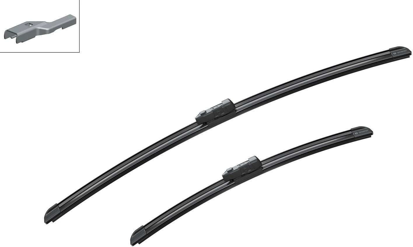 - Maximum performance flat wiper blade set with vehicle-specific original adapters