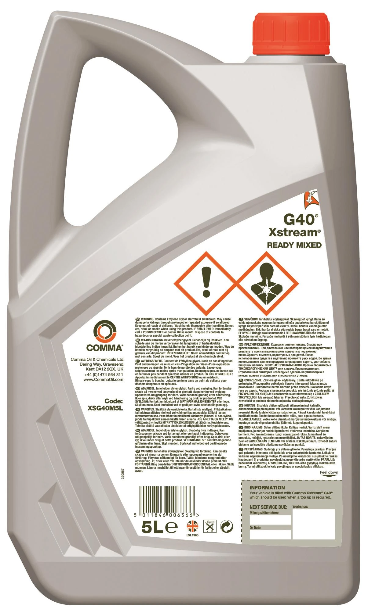 Comma G40 Anti-Freeze and Coolant RM 5L