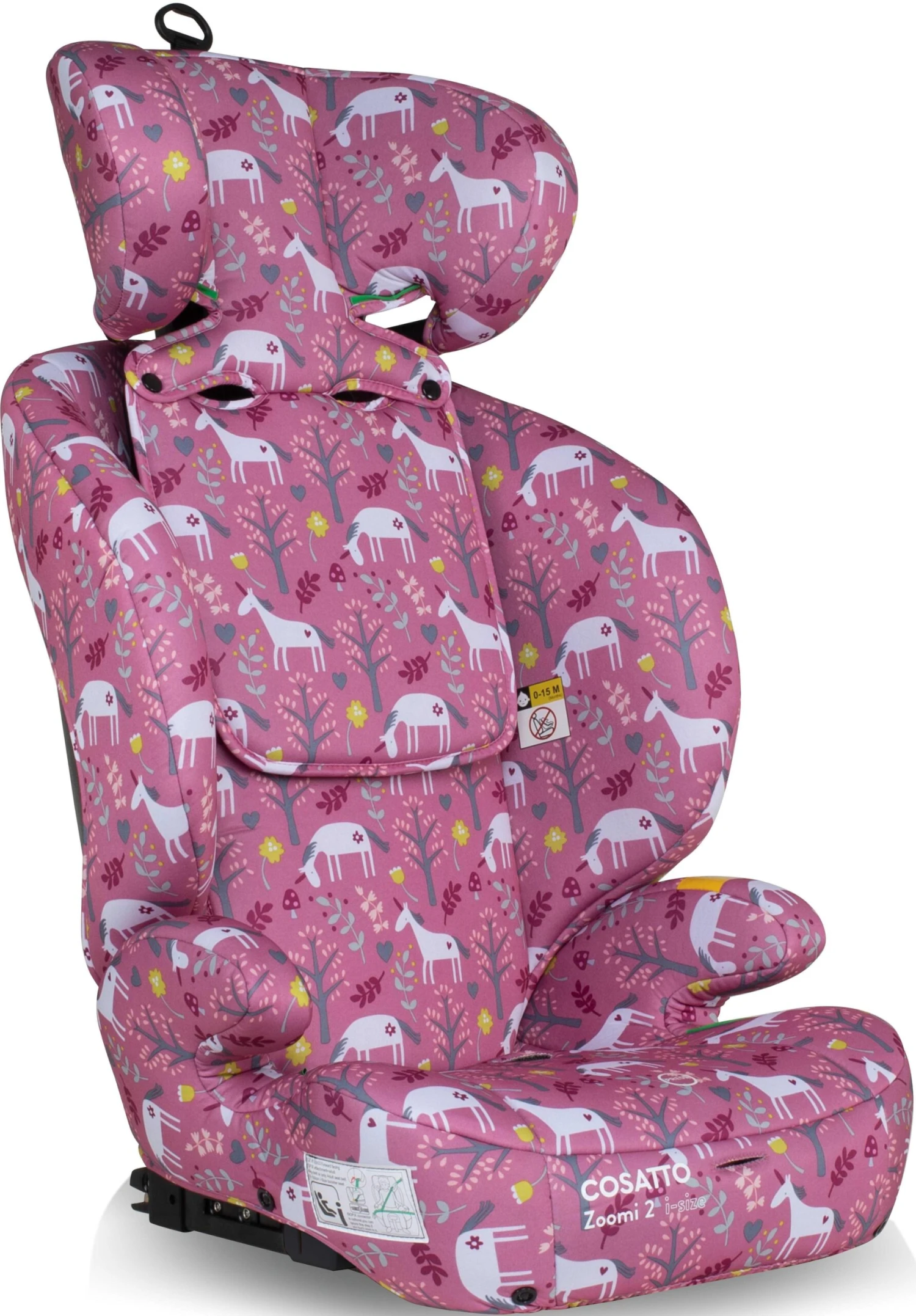 Cosatto Zoomi 2 i-size Group 1/2/3 Car Seat – Unicorn Garden . The ISOFIT car seat suitable from 76cm up to 150cm (approx.15 months to 12 years).