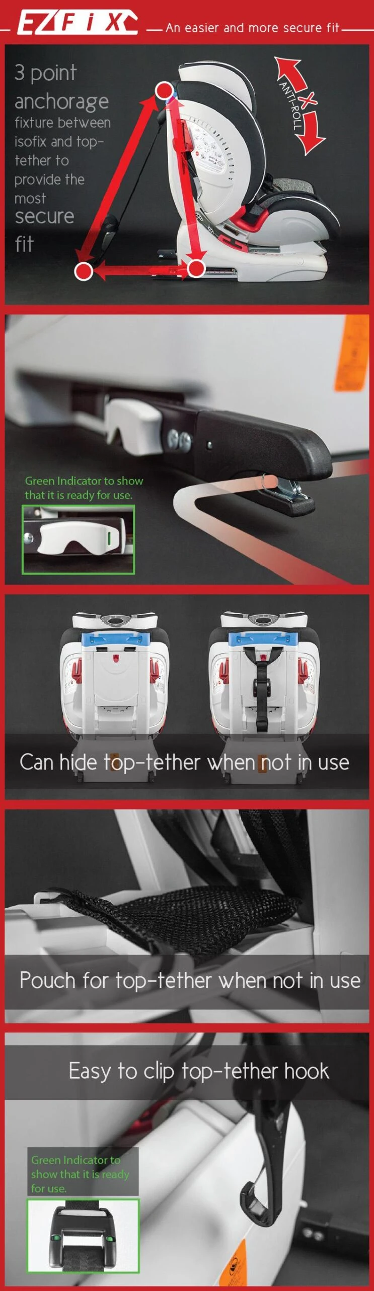 - Seat attachment type (Method of attaching seat to car) – Iso-Fix/Top Tether/Vehicle Belt