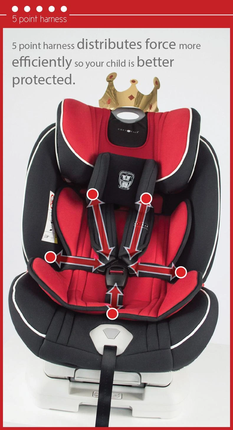 The CozyNSafe Arthur Group ISOFIX 0+1/2/3 Child Car Seat supports your little one from birth-36kgs. Both rear and forward facing, this seat also features Isofix, and Top-tether. The CozyNSafe Arthur Group ISOFIX 0+1/2/3 Child Car Seat comes with added Side impact protection and a frame fully lined with high density polyurethane foam so your child will reign in supreme comfort and ultimate security. Complete with luxury materials, this throne is worthy for any young King or Queen.