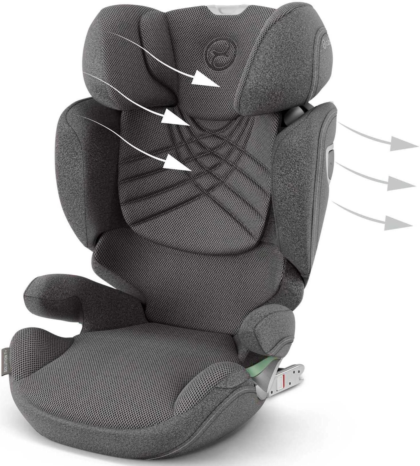 Growing with your child from approx. 3 to 12 years, the NEW Cybex Solution T i-Fix Group 2/3 Car Seat – Grey PLUS high-back booster seat features a patented reclining headrest and improved air ventilation.