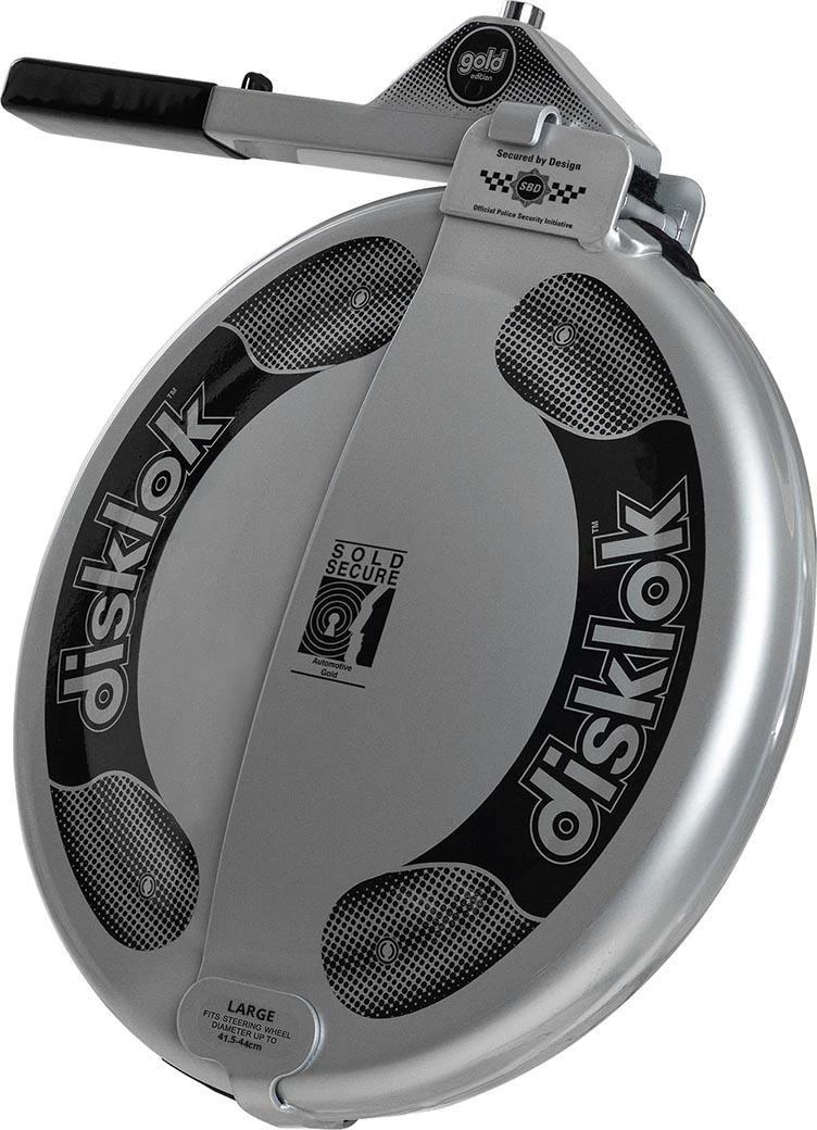 This Disklok is large and therefore suitable for steering wheels measuring 41.5cm – 44cm (this covers most of the light commercial vehicles, 4×4’s, motorhomes and classic cars).