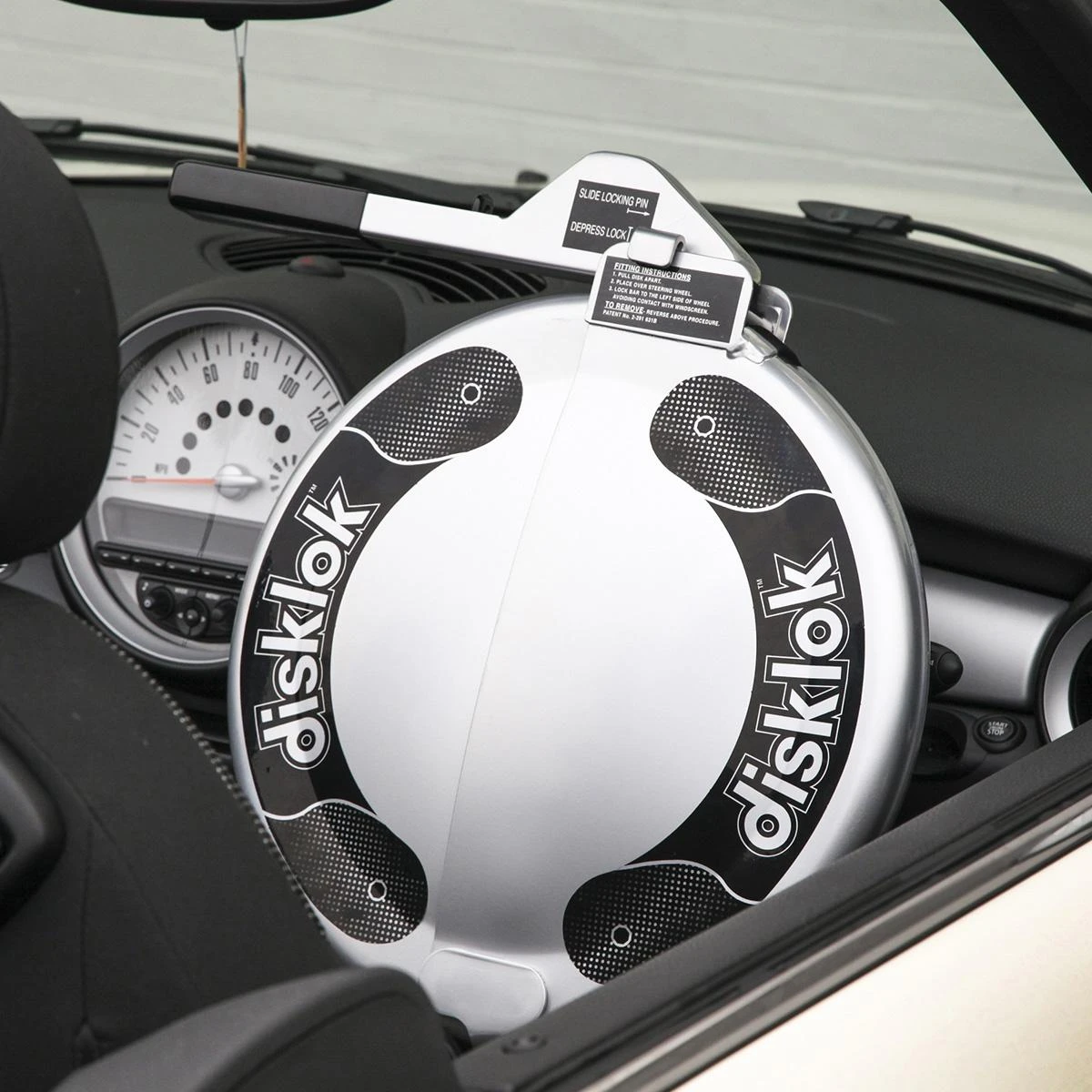 The award winning Disklok Steering Lock Large helps to prevent your vehicle from getting stolen. It’s made from reinforced steel, covers the complete steering wheel and has high visibility, making the steering lock a superb deterrent.