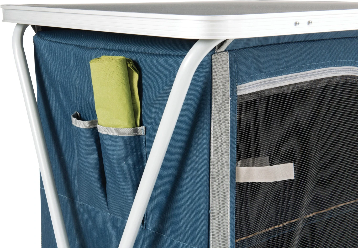Ideal for storing clothes and other personal items, the smart Easy Camp Metz Storage Unit features a stable steel frame, which simply opens out to create a stable base for the tabletop. The two shelves have a mesh door to keep clothes aired. Twin side pockets and four hooks are so useful for items you want to keep handy. The versatile package comes in a neat carrybag for transport and storage. Fully closed shelves with mesh door for ventilation