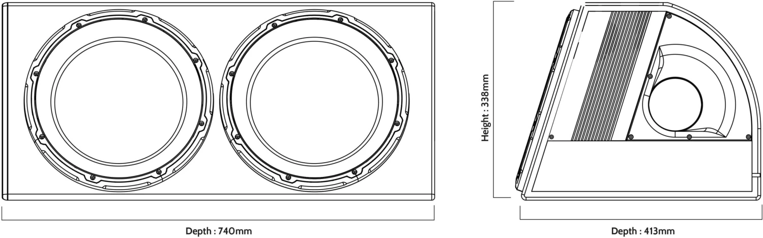 - Twin 12” ED512A Subwoofers and integrated ED7300 Amplifier.
