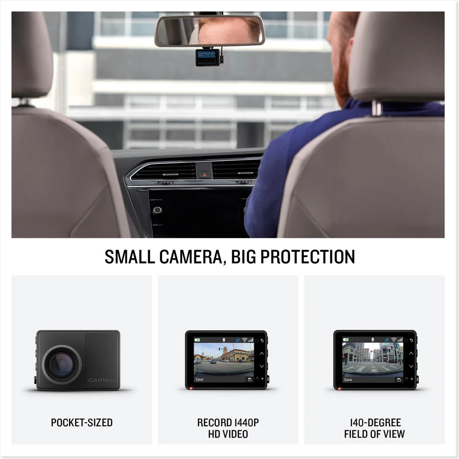 - Wide 140-degree field of view clearly captures and saves important details in 1440p HD video with Garmin Clarity™ HDR for optimum resolution in all light conditions