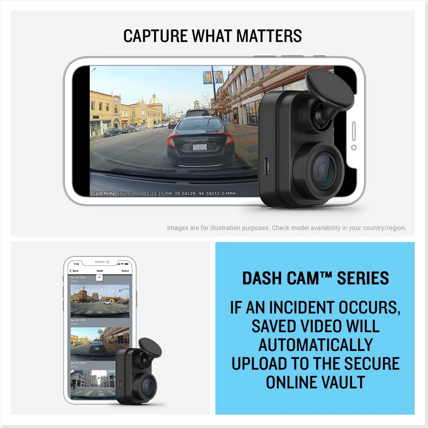 - Saved video clips automatically upload to the secure Garmin cloud Video Vault from which they can be viewed, downloaded, edited and shared from anywhere