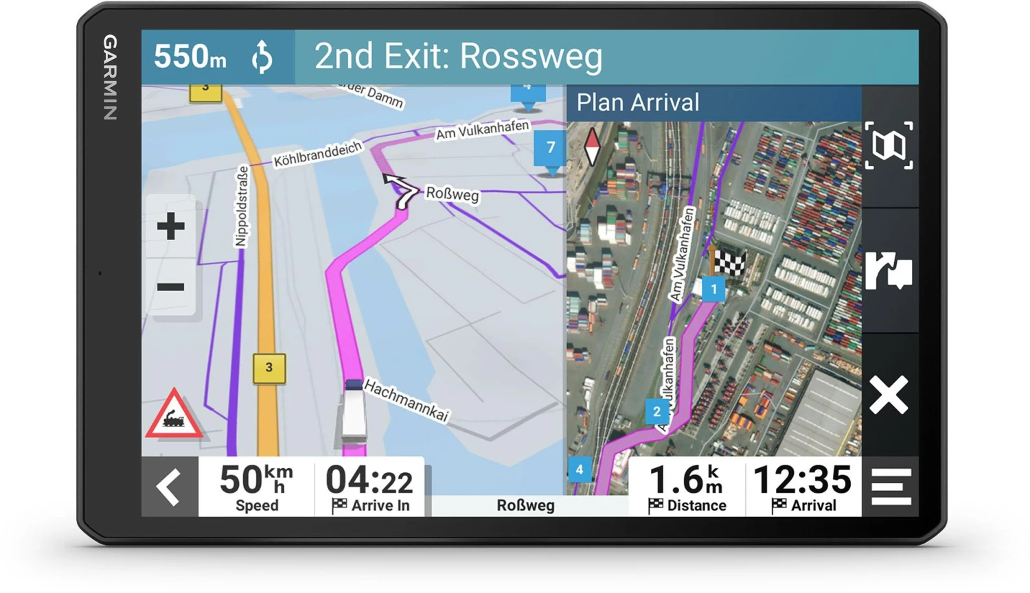 - Split-screen view shows drivers an overview of their remaining route and impending wind and weather conditions alongside their active map screen