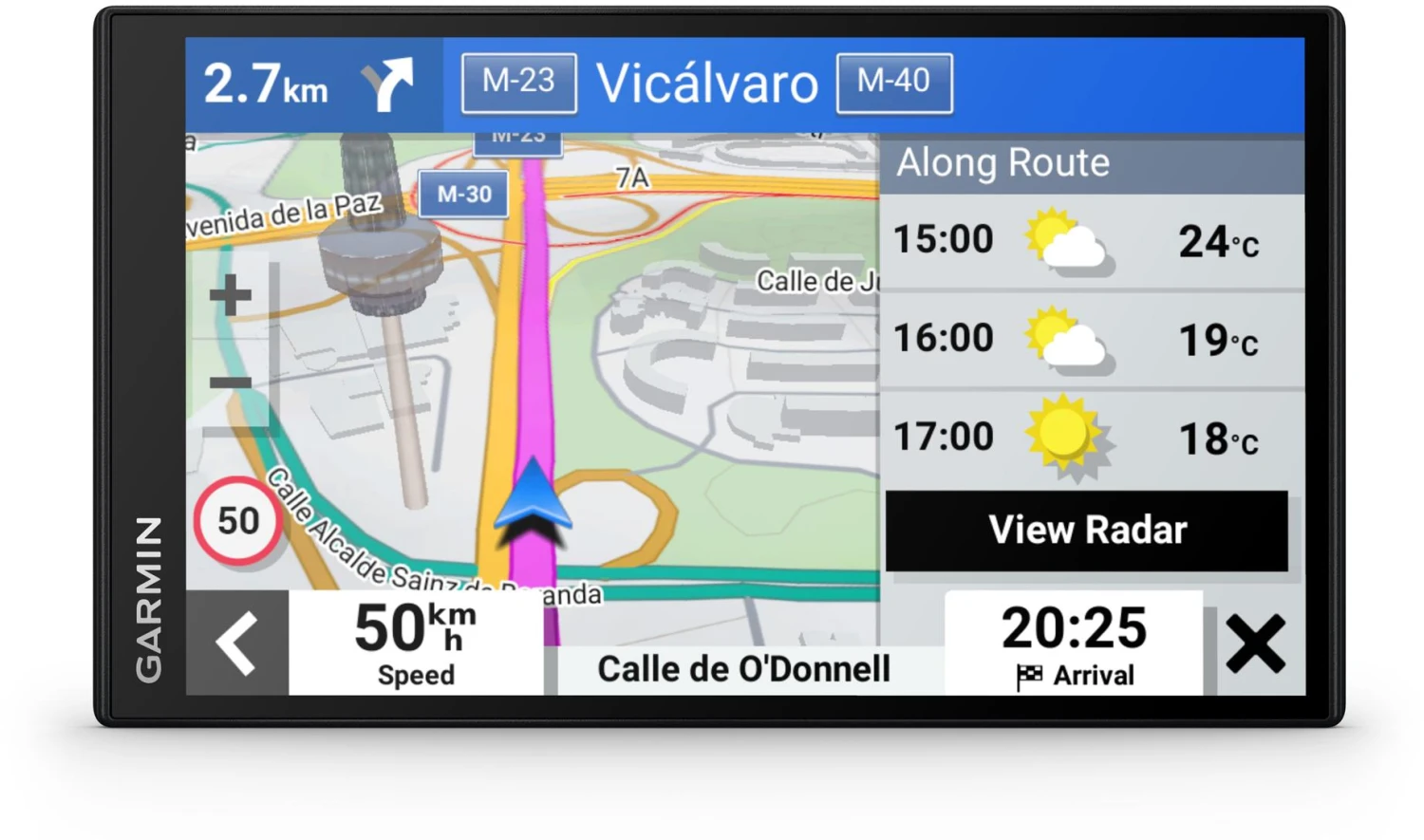- Access live traffic, fuel prices, parking, weather and smart notifications when you pair this sat-nav with your compatible smartphone using the Garmin Drive™ app.