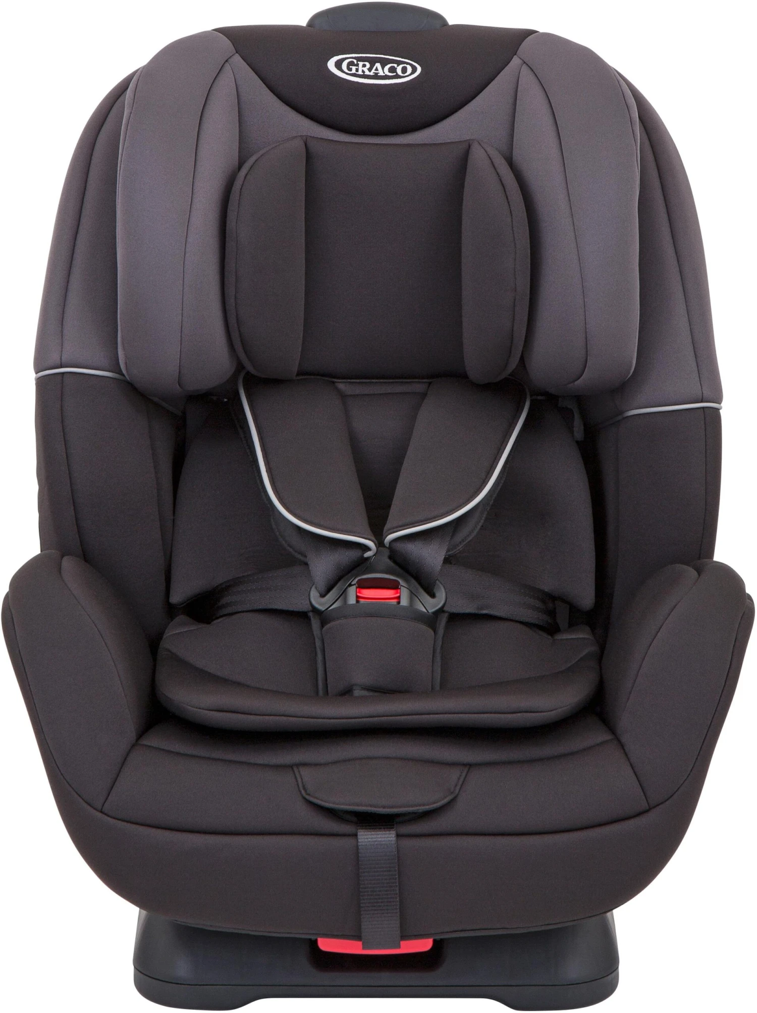 The Graco Enhance Group 0+/1/2 Car Seat -Black/Grey (up to 25kg) car seat is suitable from birth to approx. 7 years and can be used both forward and rearward facing. The seat easily transitions from rearward facing infant car seat (birth to 18kg) to a forward facing 5-point harness car seat (9-25kg). With side impact protection, a no-rethread harness for easy adjustment, and a steel re-enforced frame you can guarantee you and your child will feel safe and happy on every journey.