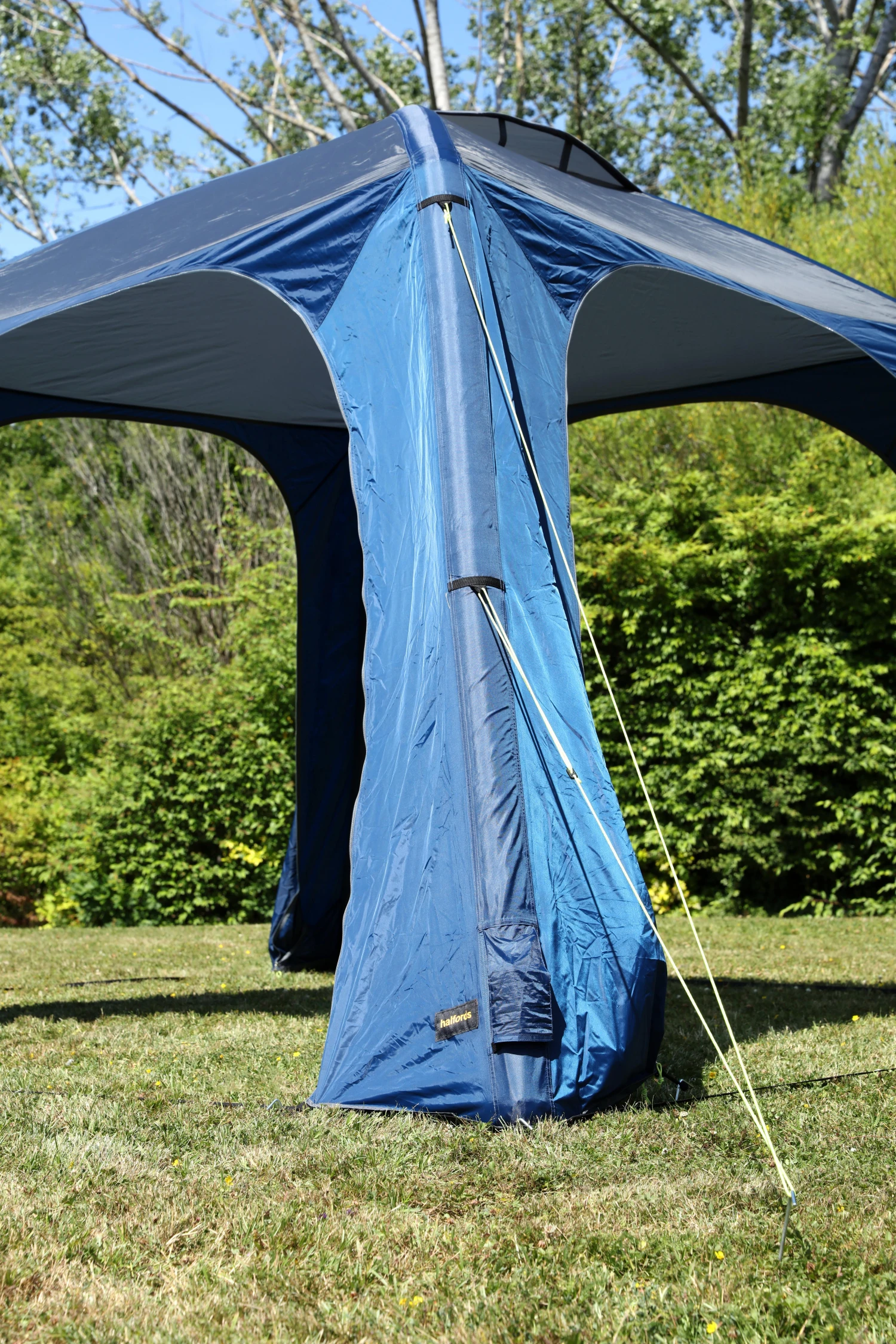 Inside, the shelter provides excellent headroom and comes with four zip-away side panels so that you can tailor the space to meet your requirements. Storage pockets inside the shelter allow you to tuck the side panels neatly away. The shelter’s also waterproof and helps to protect you from the sun, so it’s a great option whatever the weather.