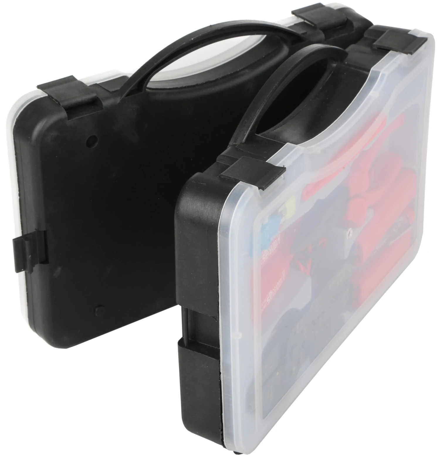 The Halfords Electrical Repair Crimping Tool Kit is an 200 piece toolkit made of durable, rust free plastic. All contents housed in a double sided plastic carry case.