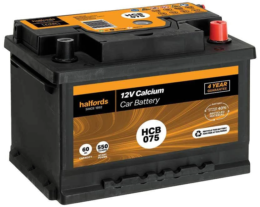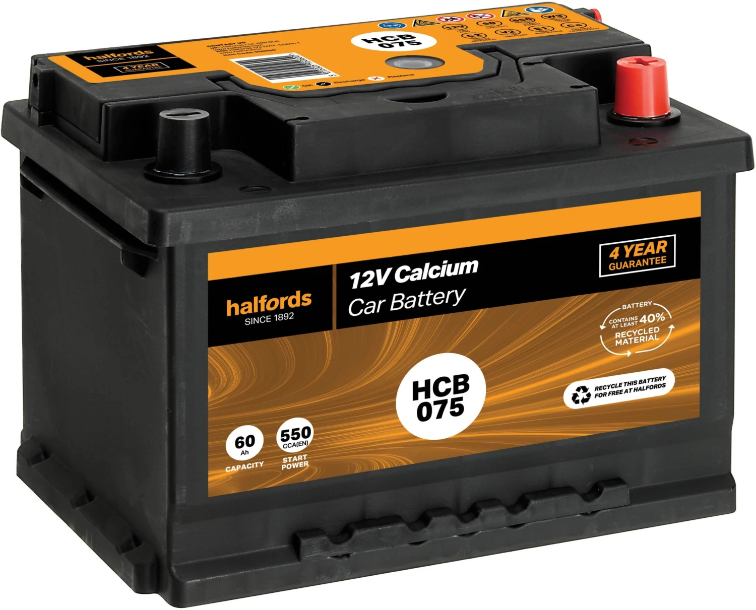 Halfords HCB075 Calcium 12V car battery 4 year Guarantee