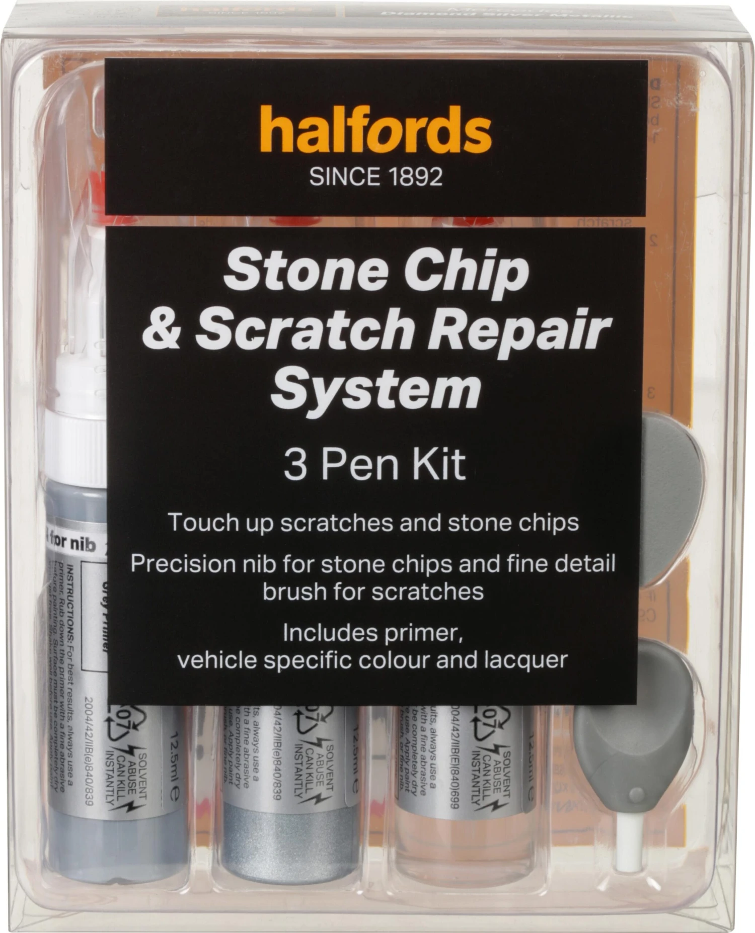 The touch up paint is the ideal way to repair small unsightly scratches and stone chips on your cars bodywork, blending them in with an exact colour match. Simply use the special glass fibre prep tool to remove any loose/flaking paint and all rust from the chip or scratch. Then apply the high build primer filler using the precision nib applicator or brush into the prepared rust free chips and scratches, building up the thickness in stages (leaving 10-20 minutes between coats) leaving 24 hours to harden.