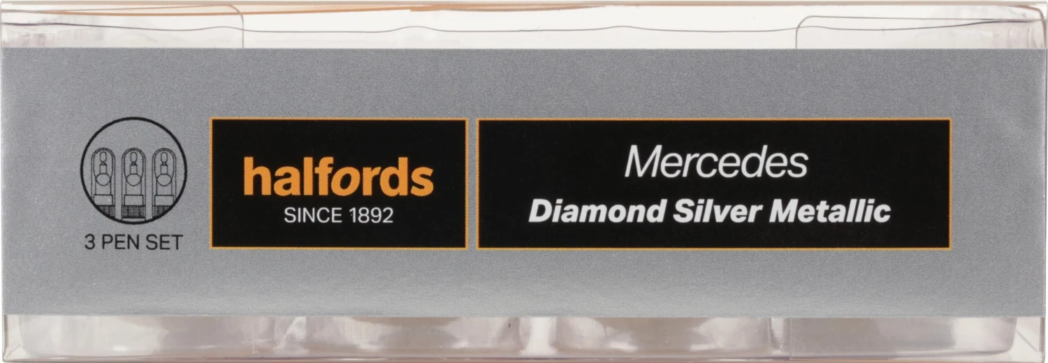 The Halfords Mercedes Diamond Silver Scratch & Chip Repair Kit is compatible with Mercedes code: 9988, 988.
