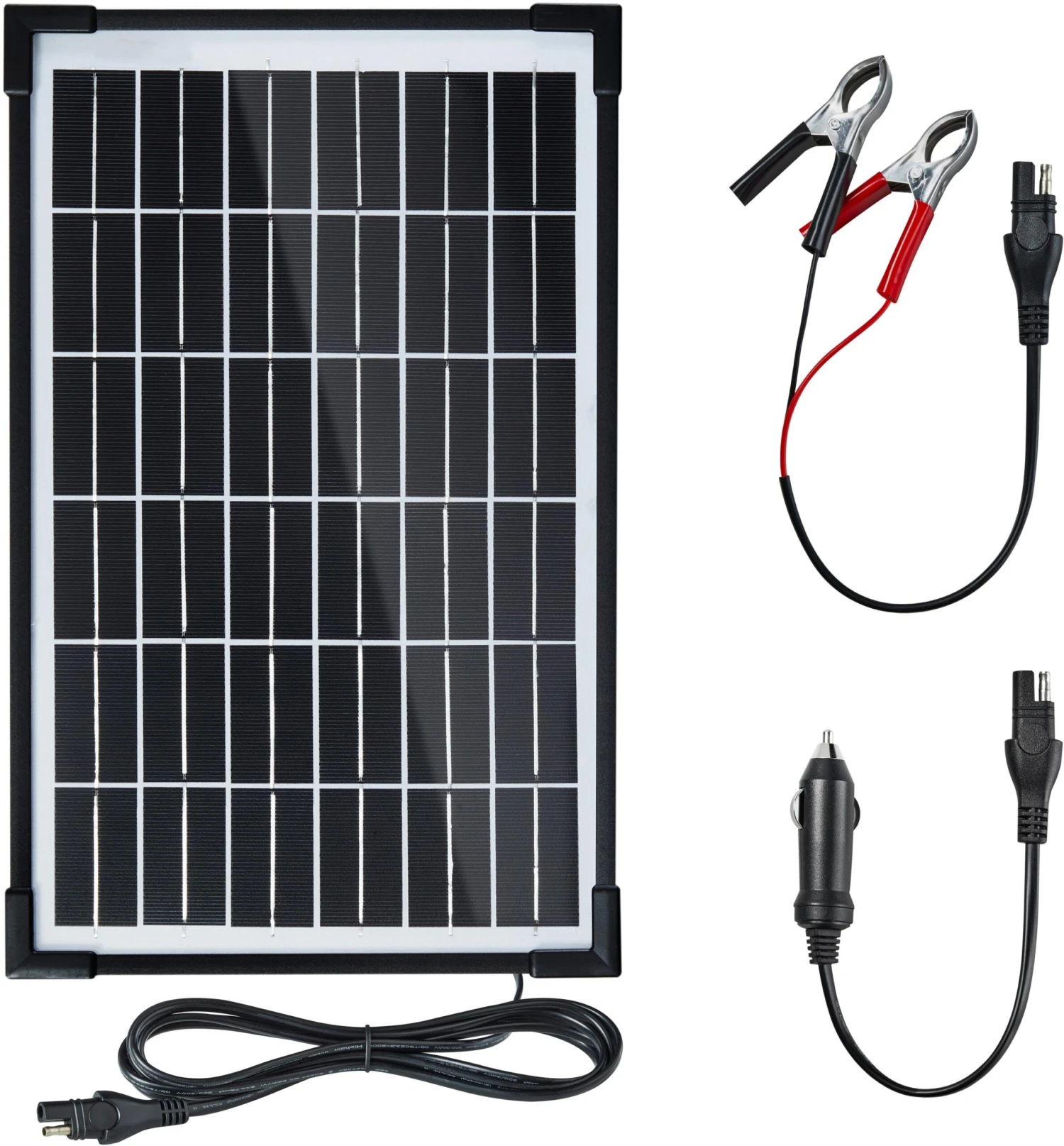 12V solar maintainer providing a max of 10W additional power to top vehicle batteries. Halfords 12V 10W Solar maintainer is a low carbon environmentally friendly way to top up your battery's charger. Ideally for seasonally used vehicles such as caravans, motorcycles and golf trolleys. Will work in overcast conditions and is weather resistant.