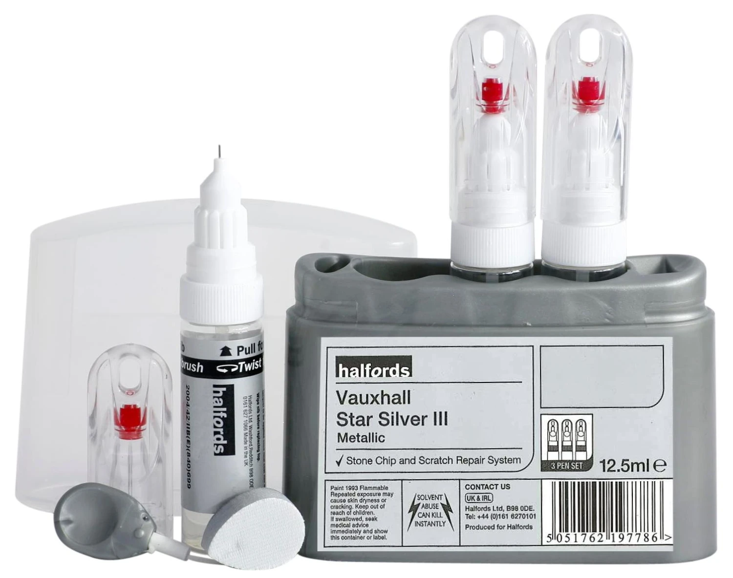 The Halfords Vauxhall Star Silver III scratch & chip repair kit is compatible to Vauxhall manufacturers code: 157, 2AU & 09K.