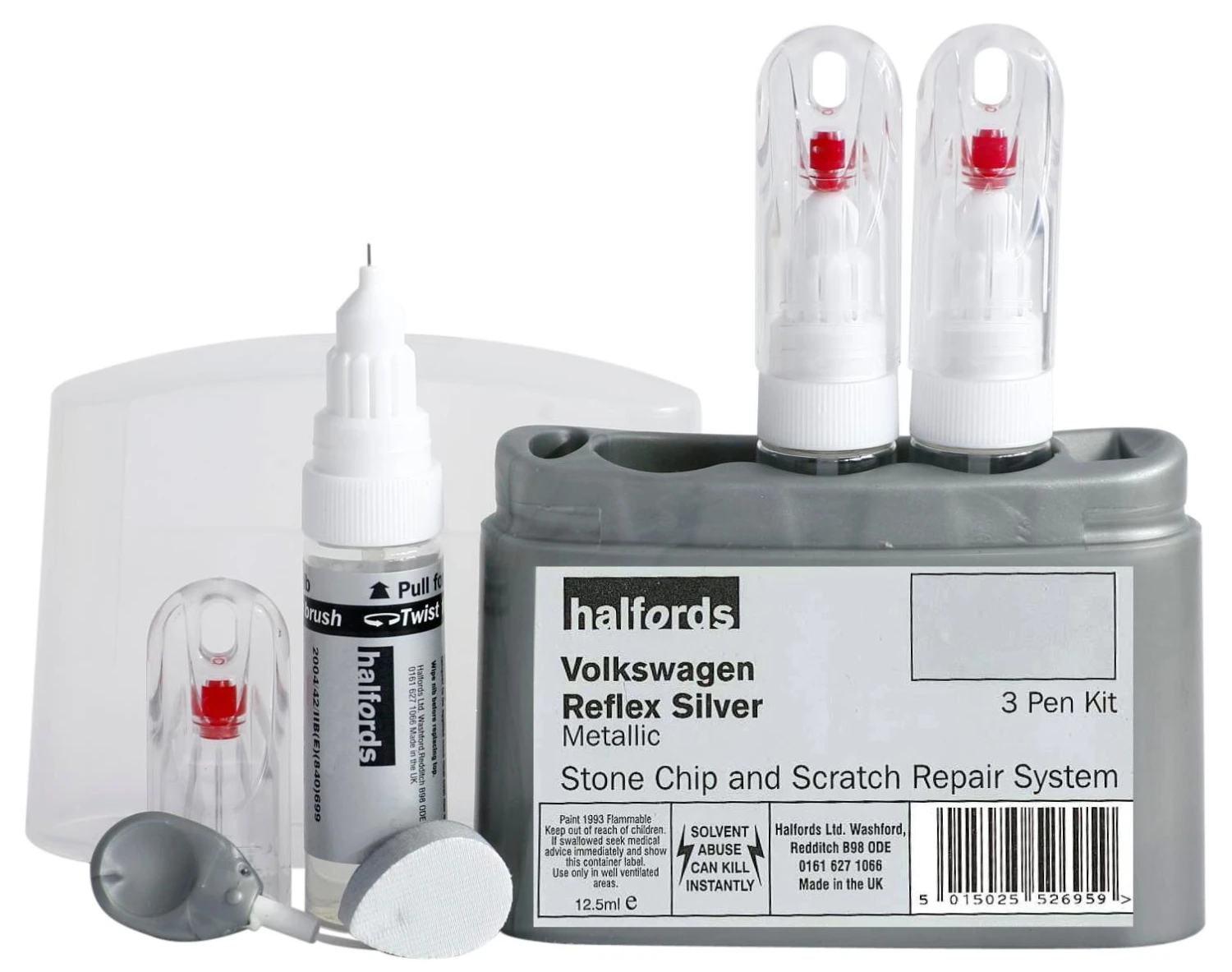 The Halfords Volkswagen Reflex Silver scratch & chip repair kit is compatible to Volkswagen manufacturers code: LA7W, 8E & 9992.