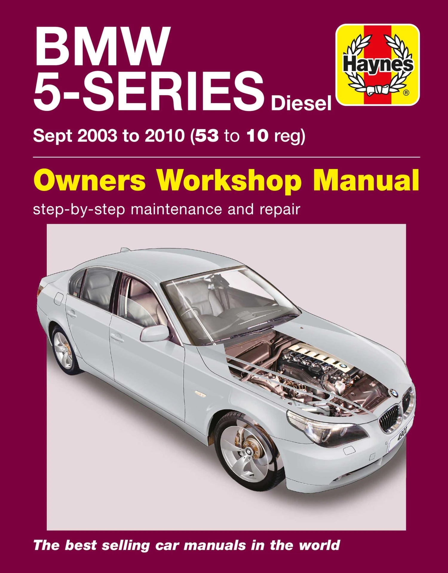 BMW 5-Series Saloon (E60) and Touring (E61) with 4- and 6- cylinder turbo-diesel engines: 520d, 525d, and 530d. Turbo-Diesel: 2.0 litre (1995cc), 2.5 litre (2497cc) and 3.0 litre (2993cc). Does NOT cover new 5-Series (F10/F11) range introduced during 2010. Does NOT cover petrol models, 535d twin turbo diesel models, or models with xDrive transmission.