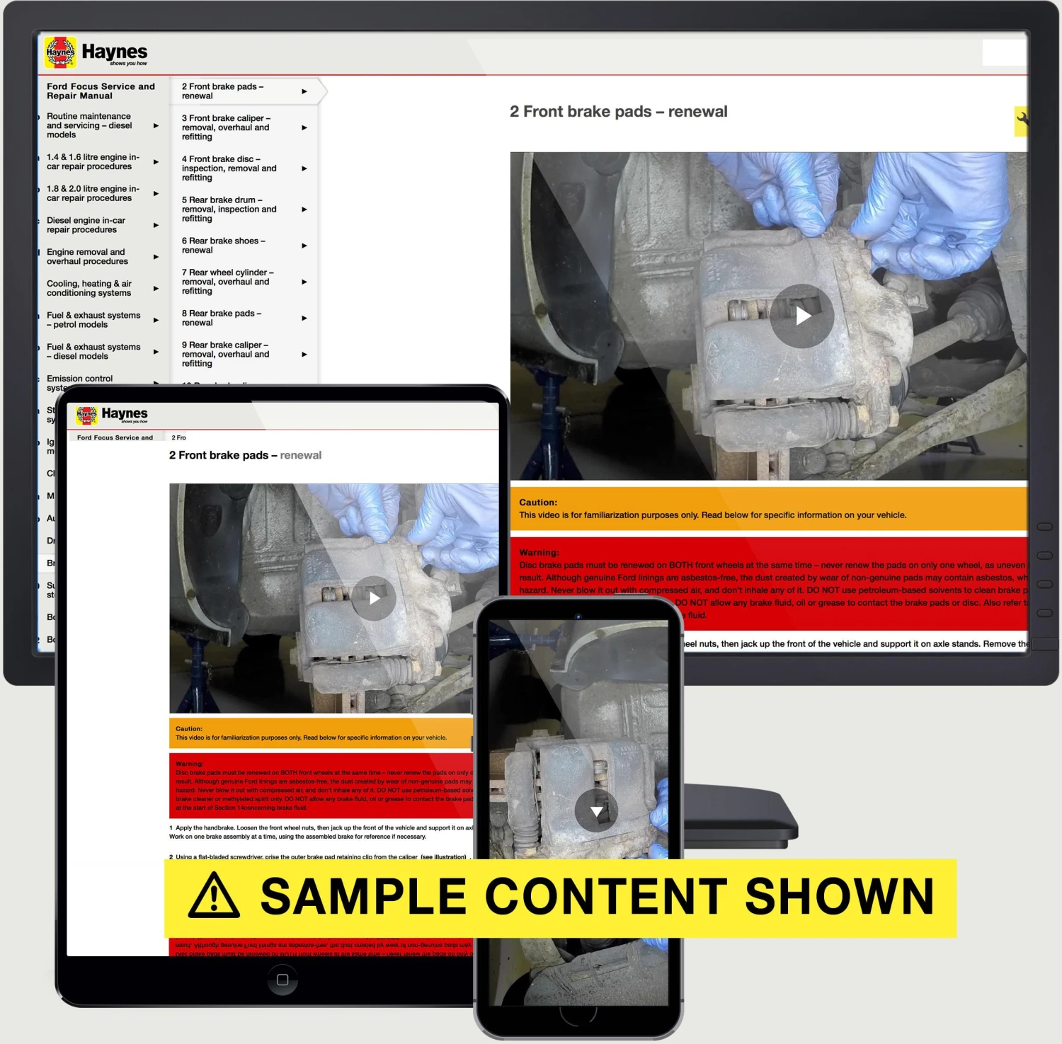 A Haynes Online Manual is written from hands-on experience gained from the complete strip-down and rebuild of the vehicle. It includes everything found in the print edition, plus additional content and features. Use it on your phone, tablet, laptop or desktop and print as much as you need. With a Haynes Online Manual in an online format you get all the trusted content of a printed manual, with additional features to help you get the job done. Take your entire manual with you on every journey.