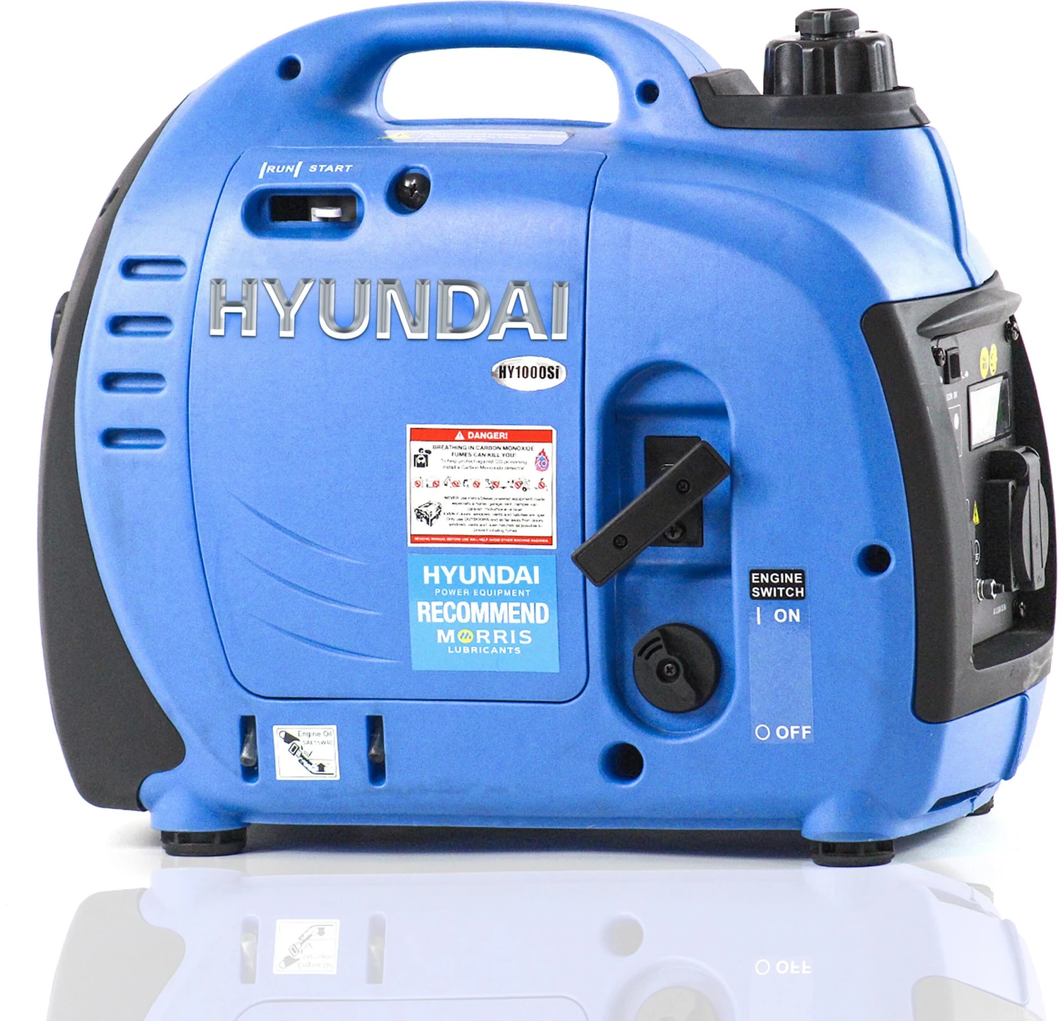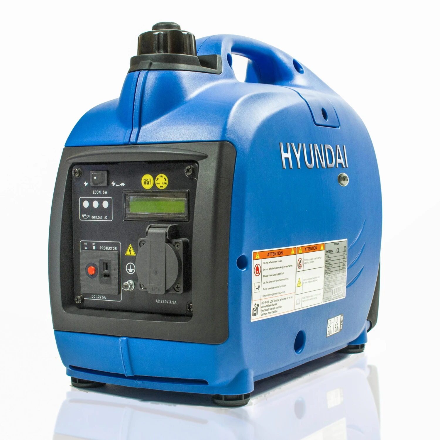 The HY1000Si is a compact, lightweight and portable inverter generator from Hyundai. Providing a convenient and cost-effective source of power, this quiet inverter generator has an impressive maximum output of 1000w / 1kW, and continuous power rating of 900w / 0.9kW.