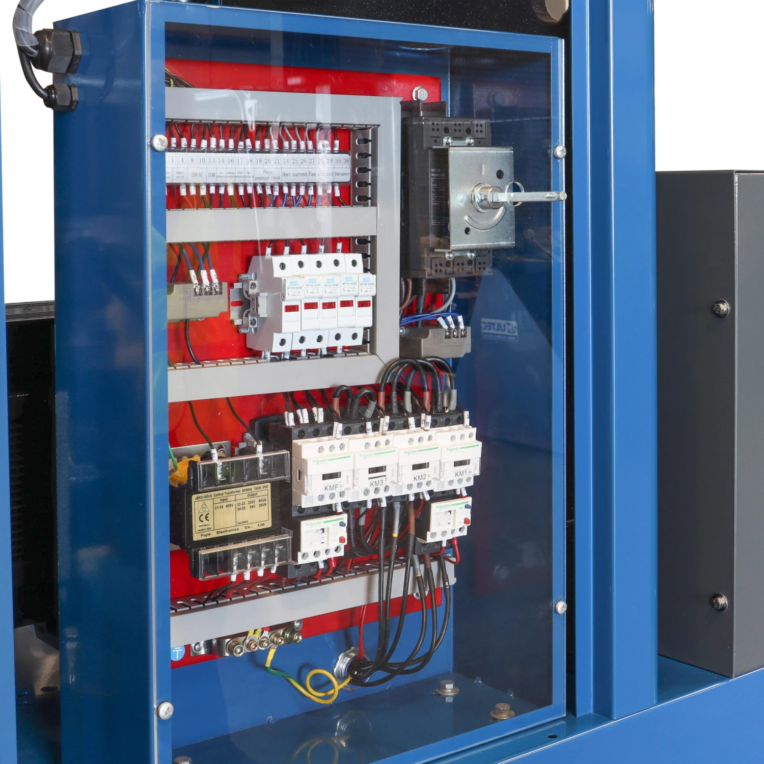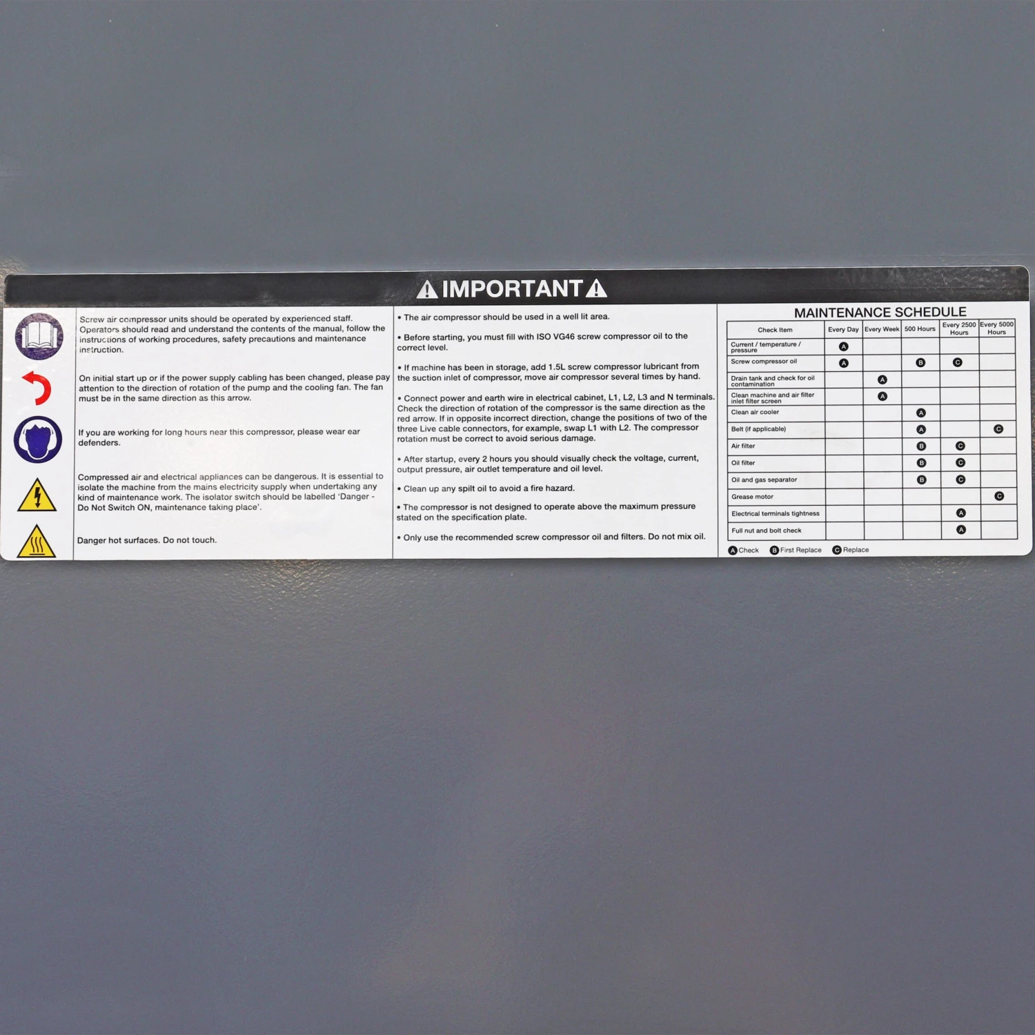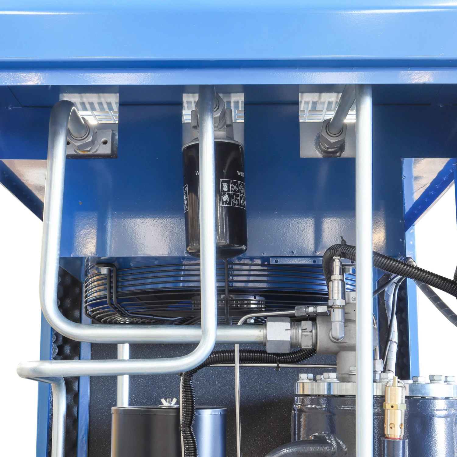 The high-efficiency motor and screw compressor unit is designed for continuous operation, with long service intervals and low maintenance and features an integral air dryer to remove moisture entering the tank.