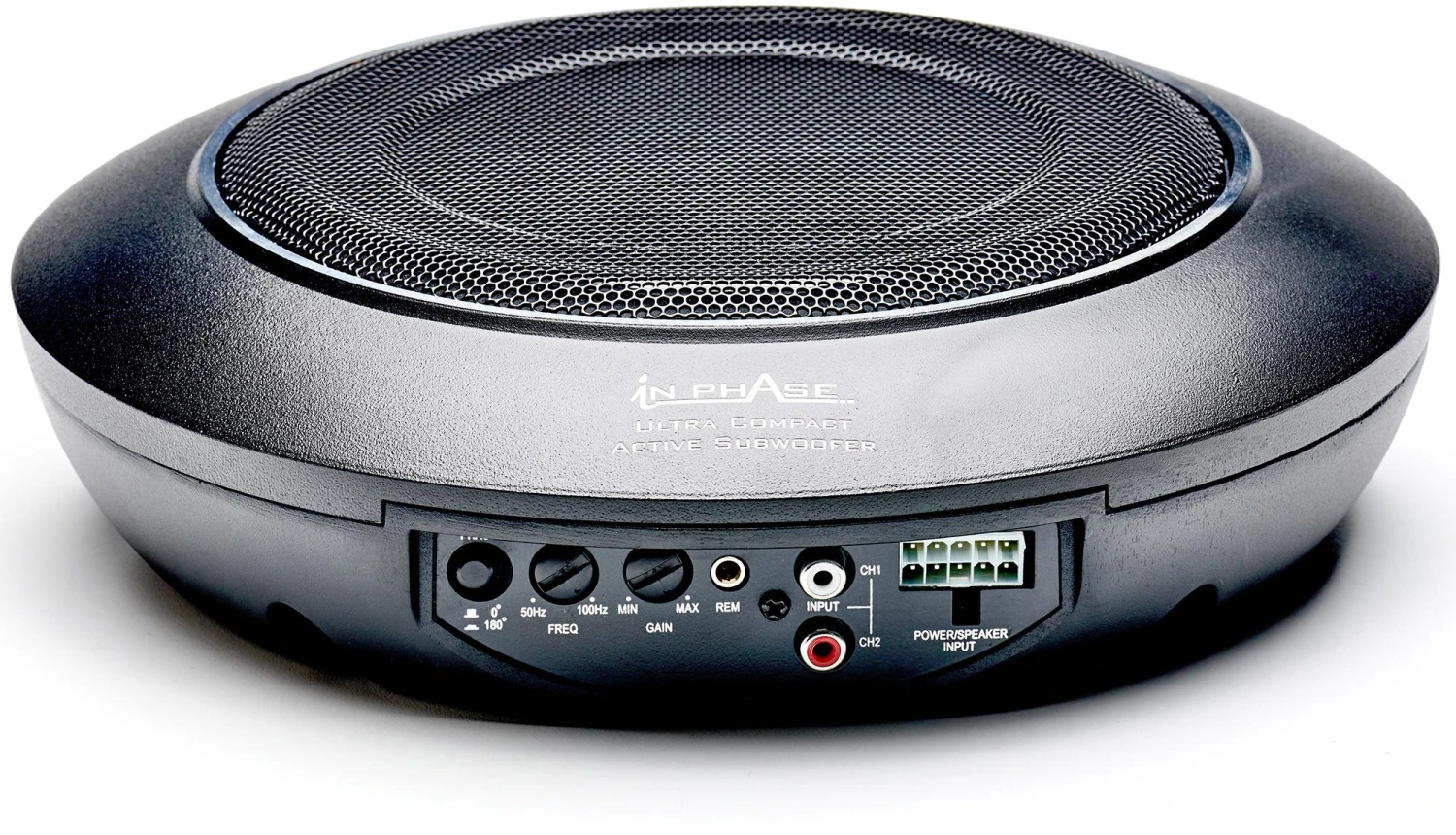 With a built in amplifier powering an aluminium coned subwoofer and a max output of 300W the In Phase USW10 is a true pocket powerhouse of audio performance.