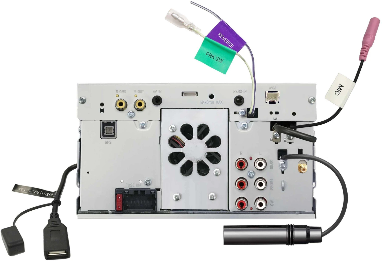 - Dedicated rear view camera input with parking guide lines