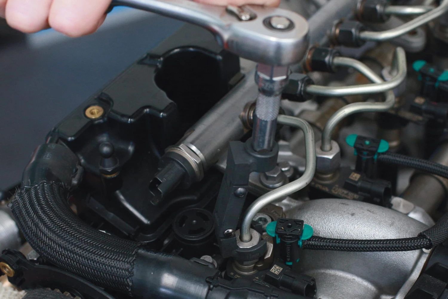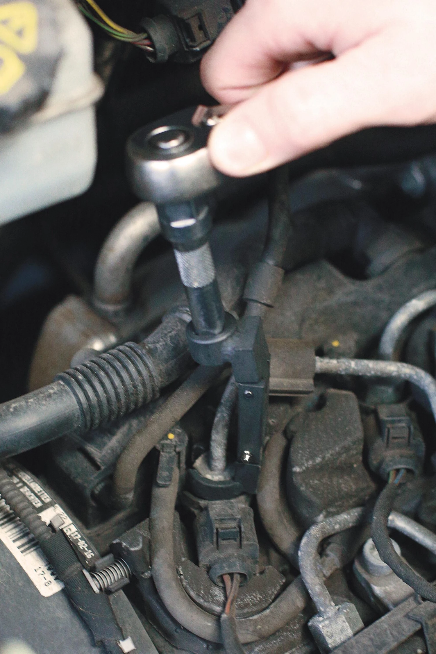 A flexible 3/8″D spring loaded socket for hard to reach fuel lines.