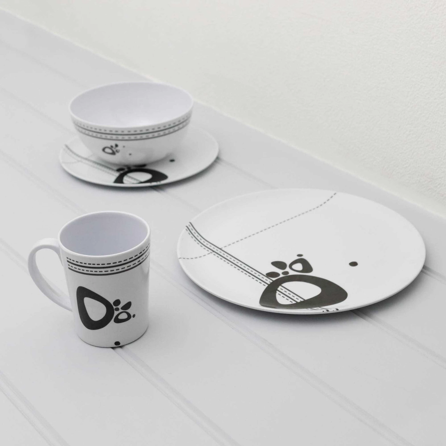 This set is made entirely from melamine, which has the following benefits over traditional crockery: