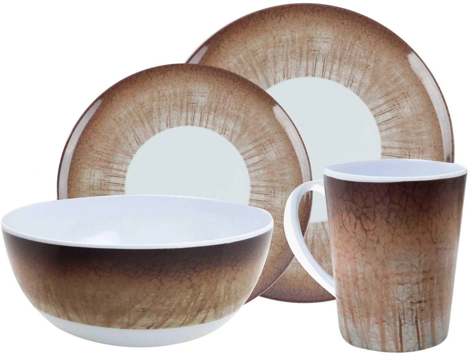 This set is made entirely from melamine, which has the following benefits over traditional crockery: