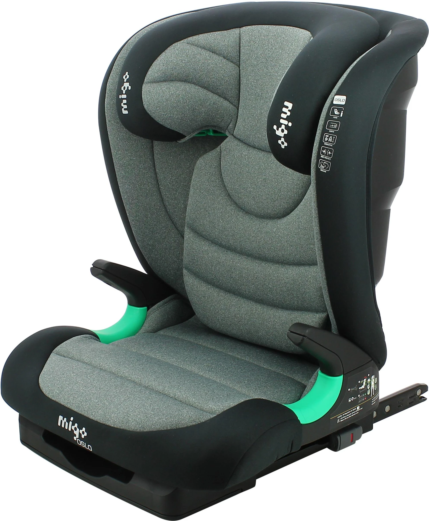 The Migo Oslo I-Size Car Seat is fully approved to provide protection for children between 100-150 cm (approx. 4 to 12 years) and is installed forward facing in the car with the Isofix system, which ensures a safe fit all all times, even when not in use. It has a head support that is height adjustable as your child grows and there are three recline positions to help stop sleeping children from falling forward. The seat has a well padded cover and side impact protection giving comfort and security during use.