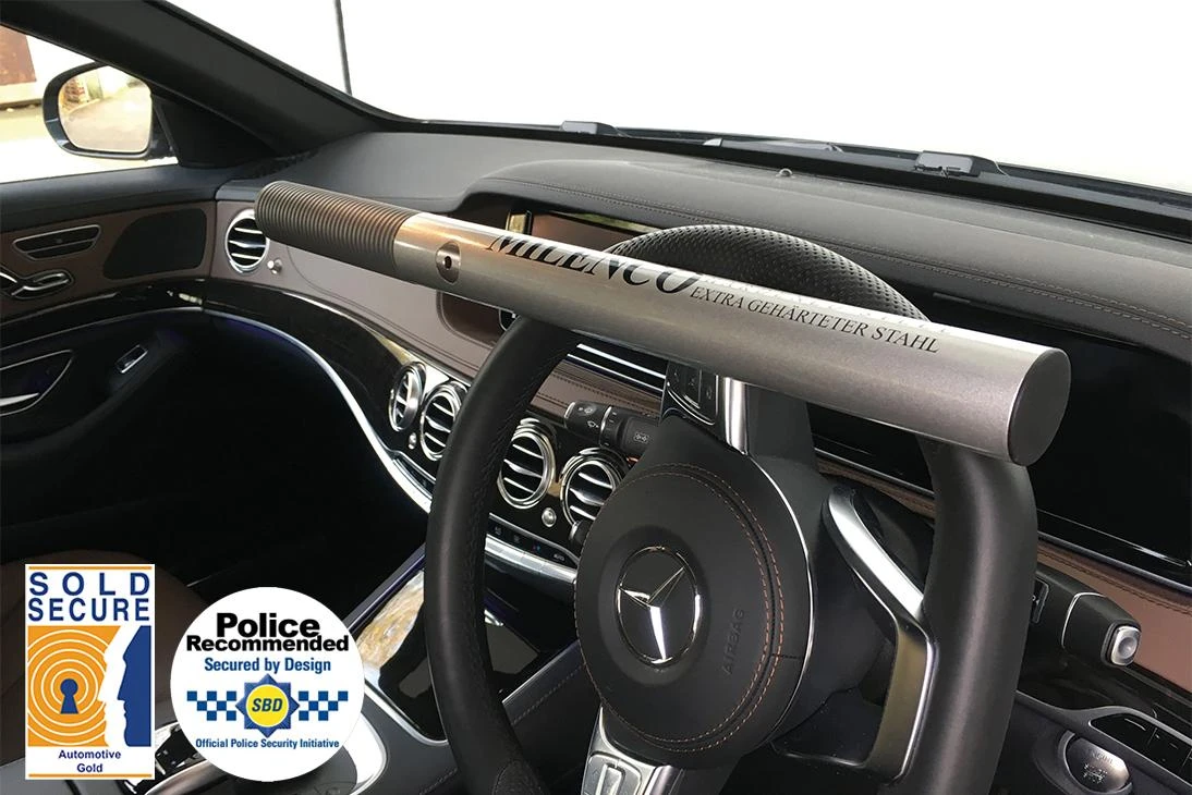 The Milenco High Security Steering Wheel Lock is designed to exceed the Sold Secure Gold Automotive standard – it is two-and-a-half times tougher than the Thatcham Standard. With its high security keys, innovative design and versatility to fit over 90% of steering wheels, the Milenco High Security Steering Wheel Lock offers unparalleled protection for your vehicle.