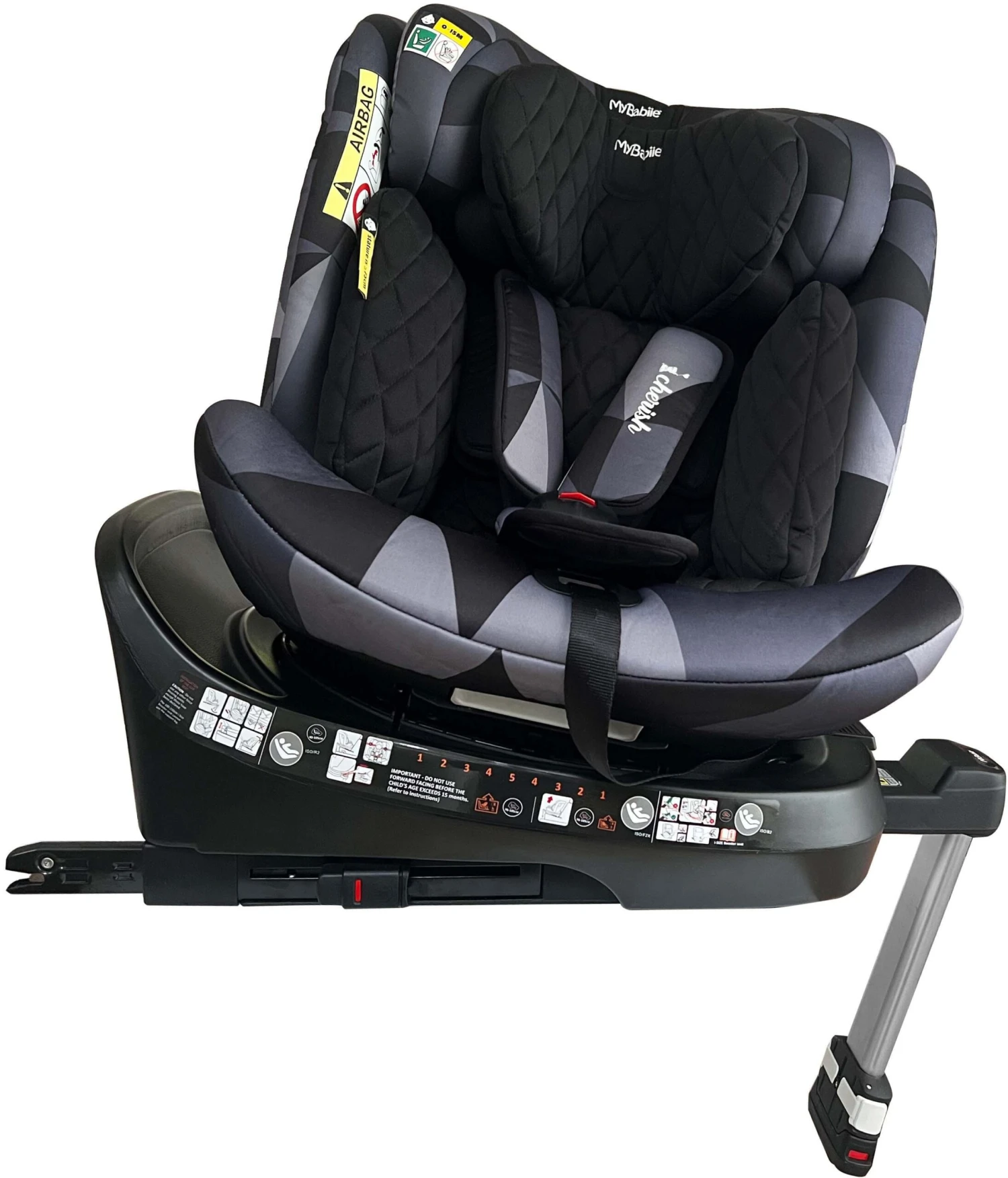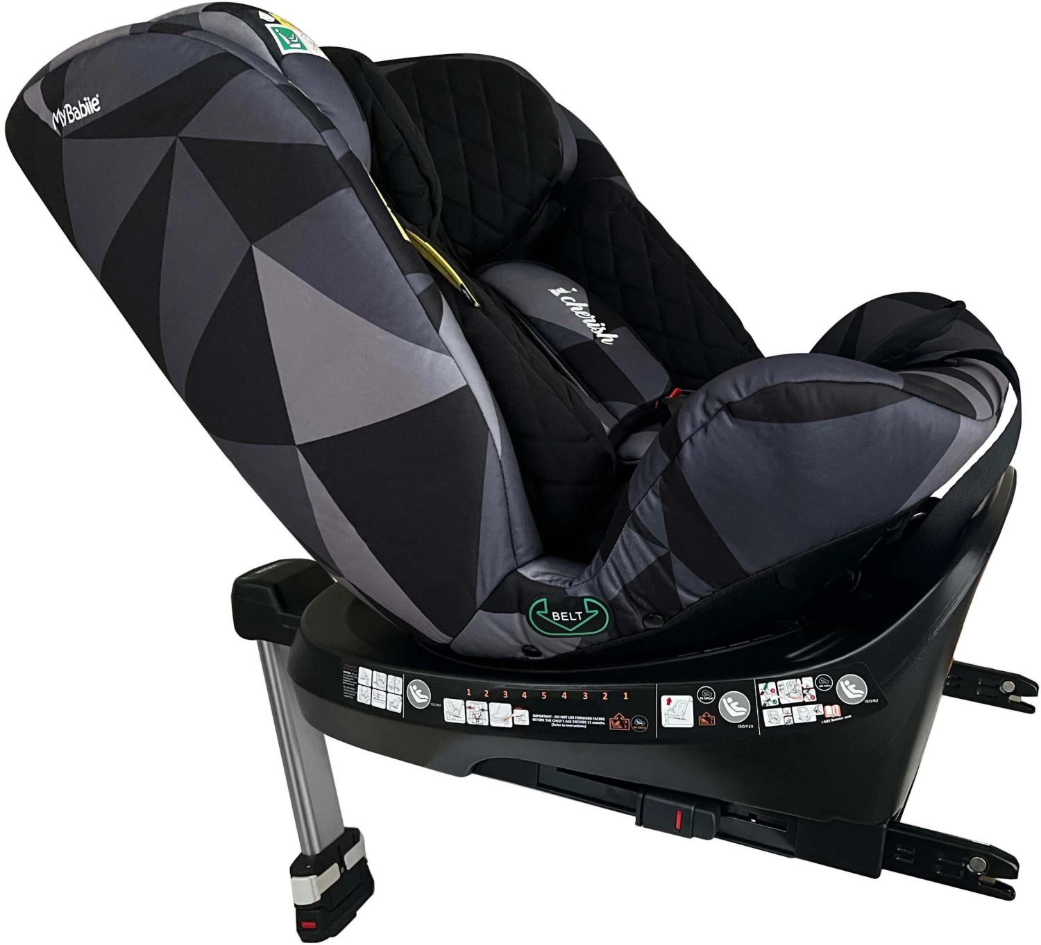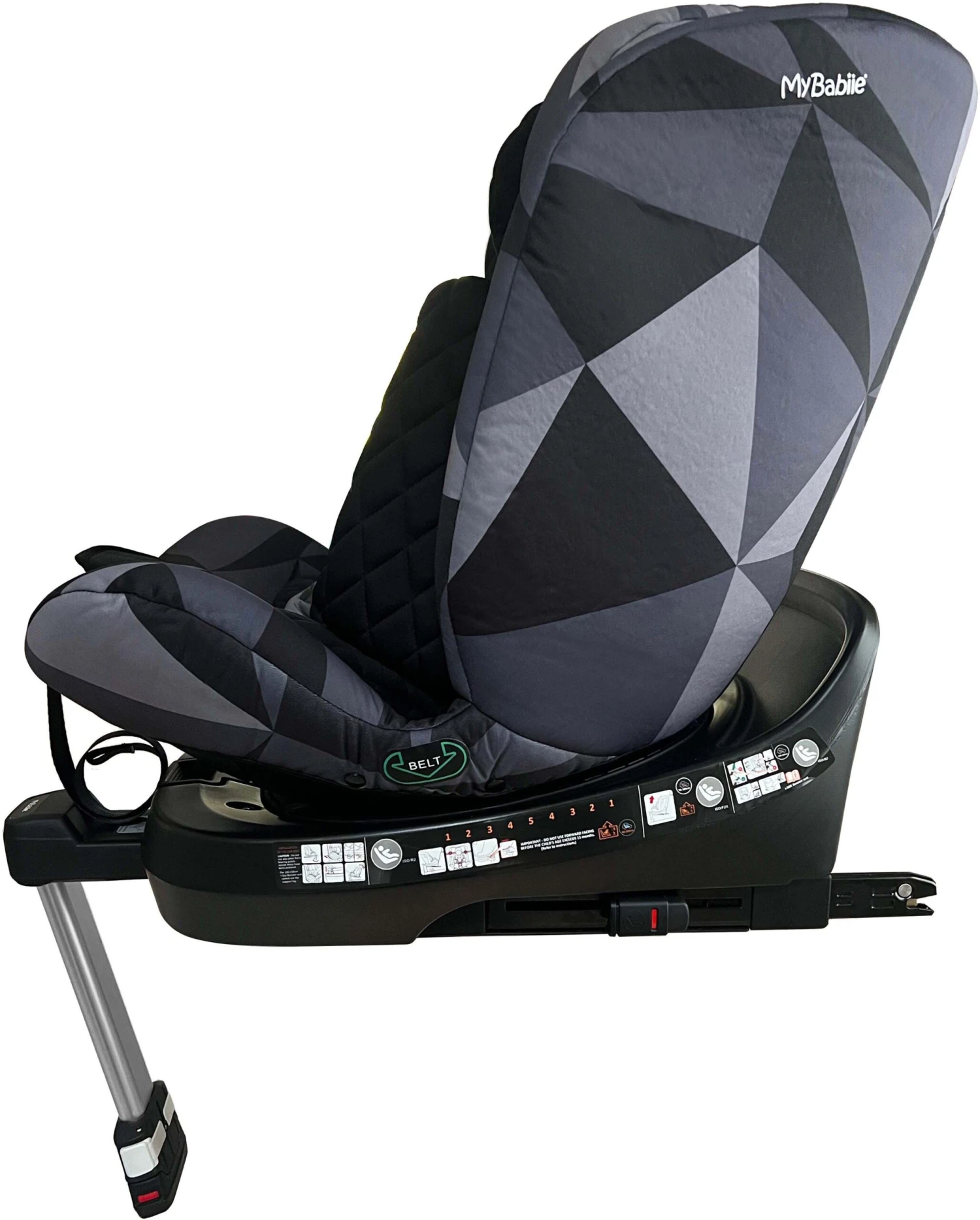 360° Easy access rotation – The My Babiie iSize Spin Car seat can be rotated to side-facing for easy access from a car door with the simple push of a button. No more stretching and twisting your back lifting baby out or when securing them in the car seat.