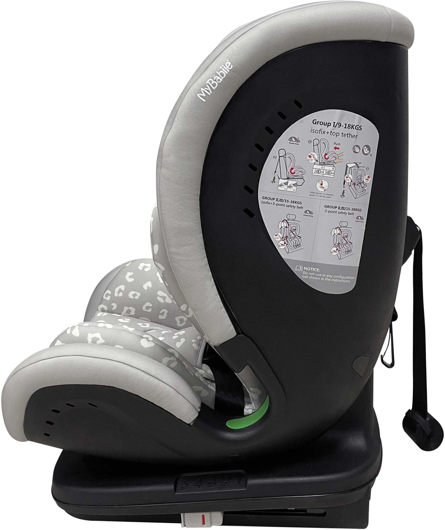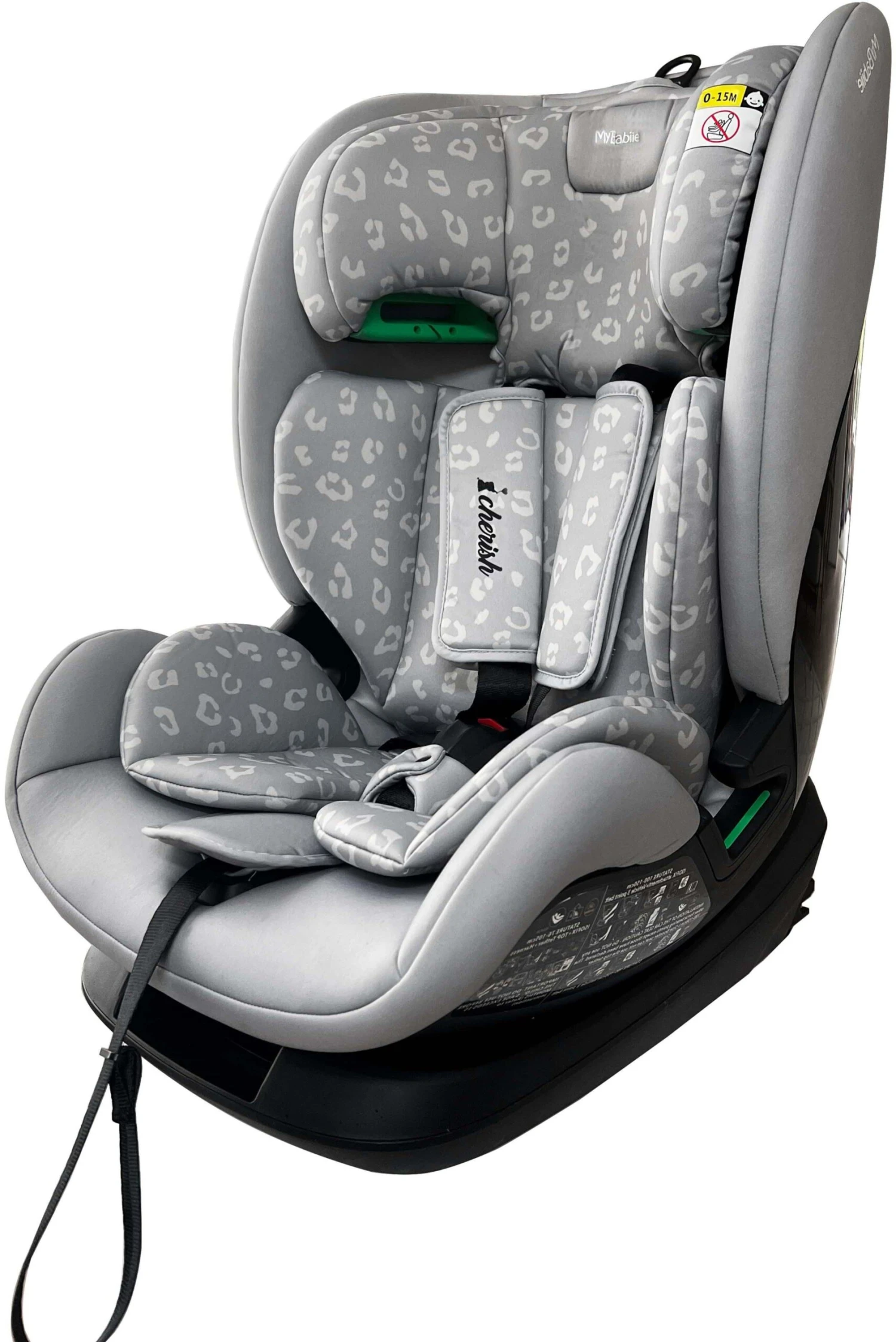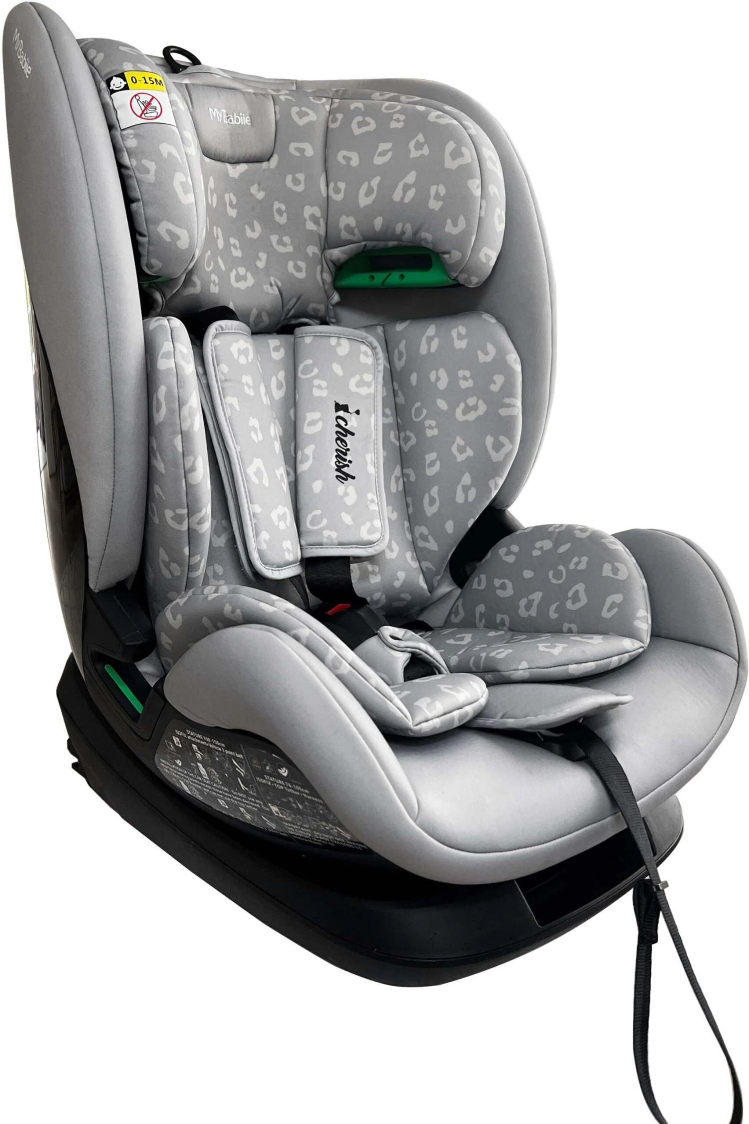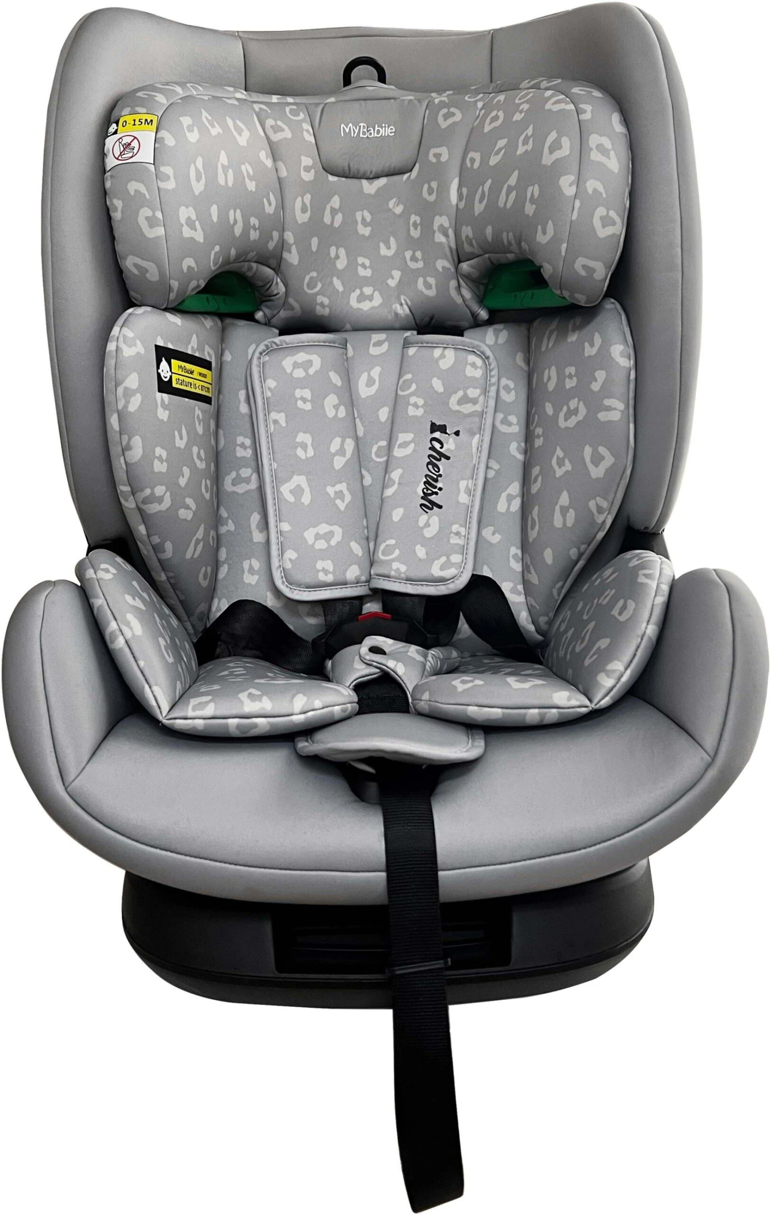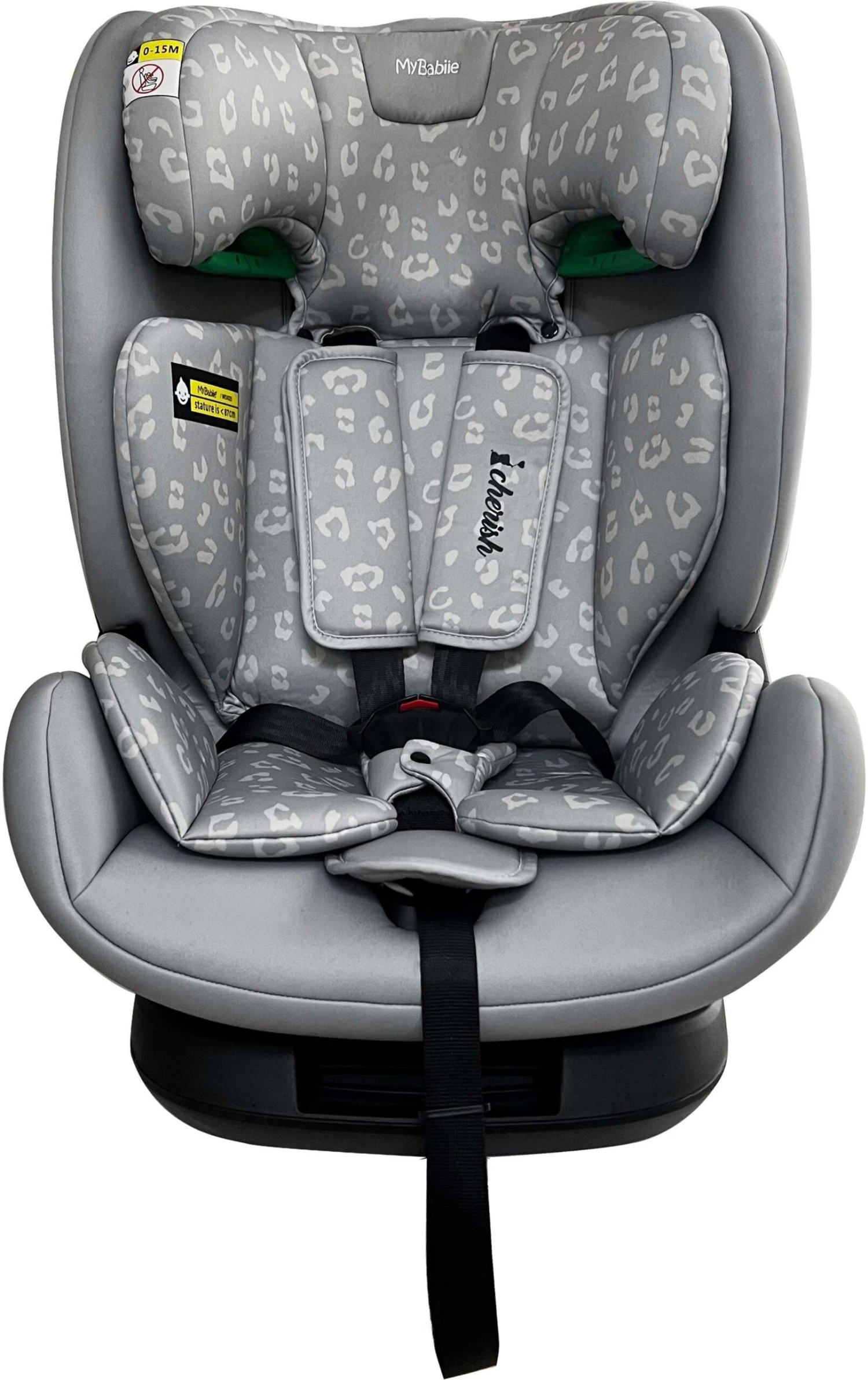 Suitable from 76cm right up to 150cm (approx. 15months to 12 years), the My Babiie Group 1/2/3 Dani Dyer Grey Leopard iSize Isofix Car Seat provides comfort and safety for you little one on every journey. As part of the latest R129 / i-Size standard, this car seat has had extensive crash and safety testing. With a stylish grey leopard padded seat and padded insert, this car seat seat is designed to ensure your child travels in comfort and safety.