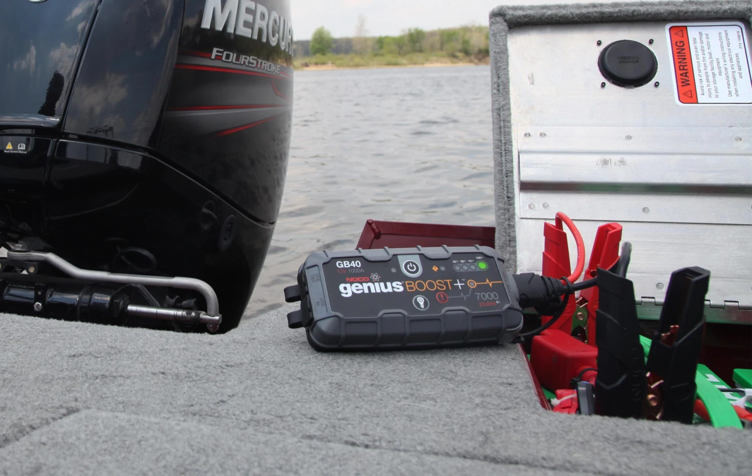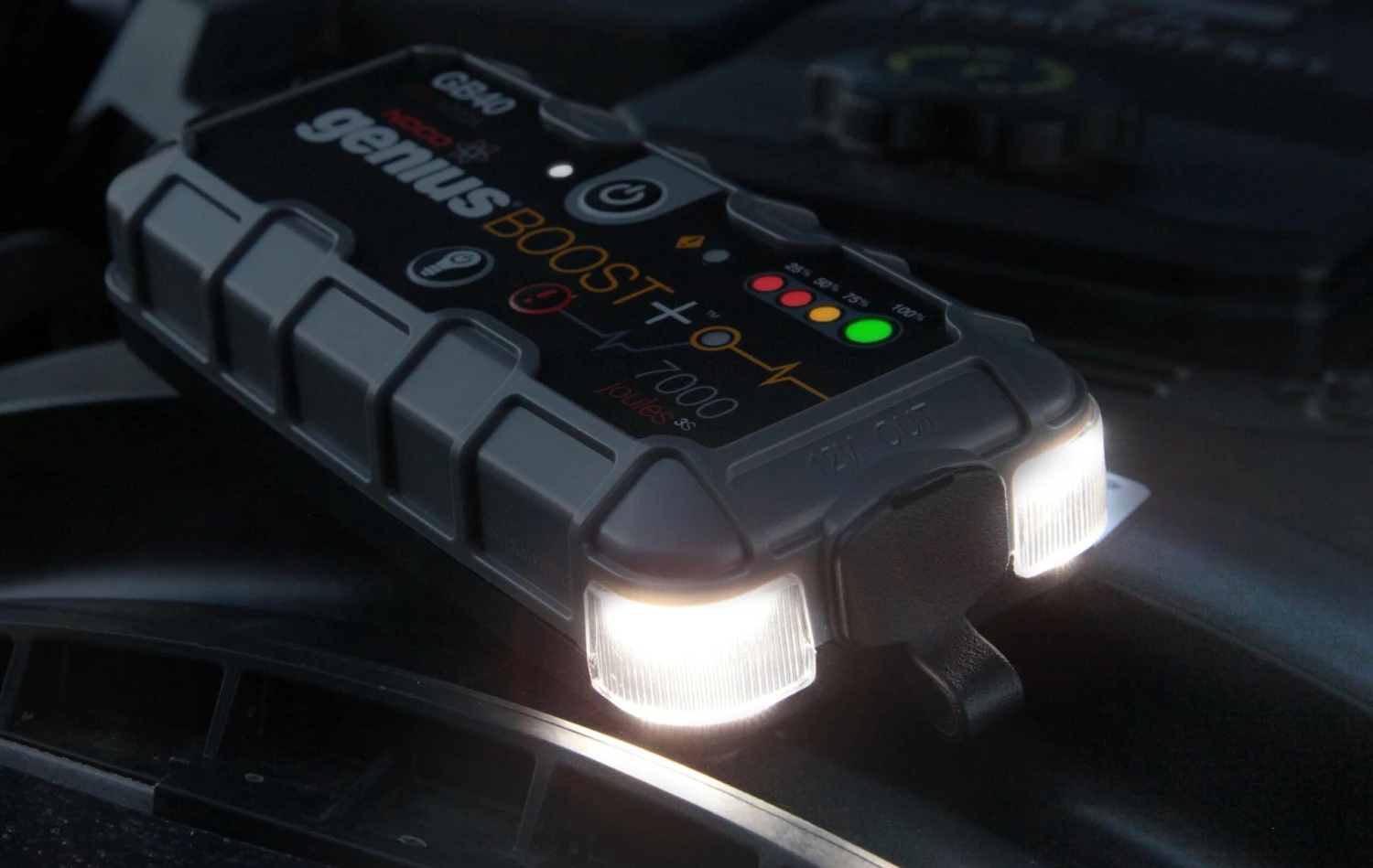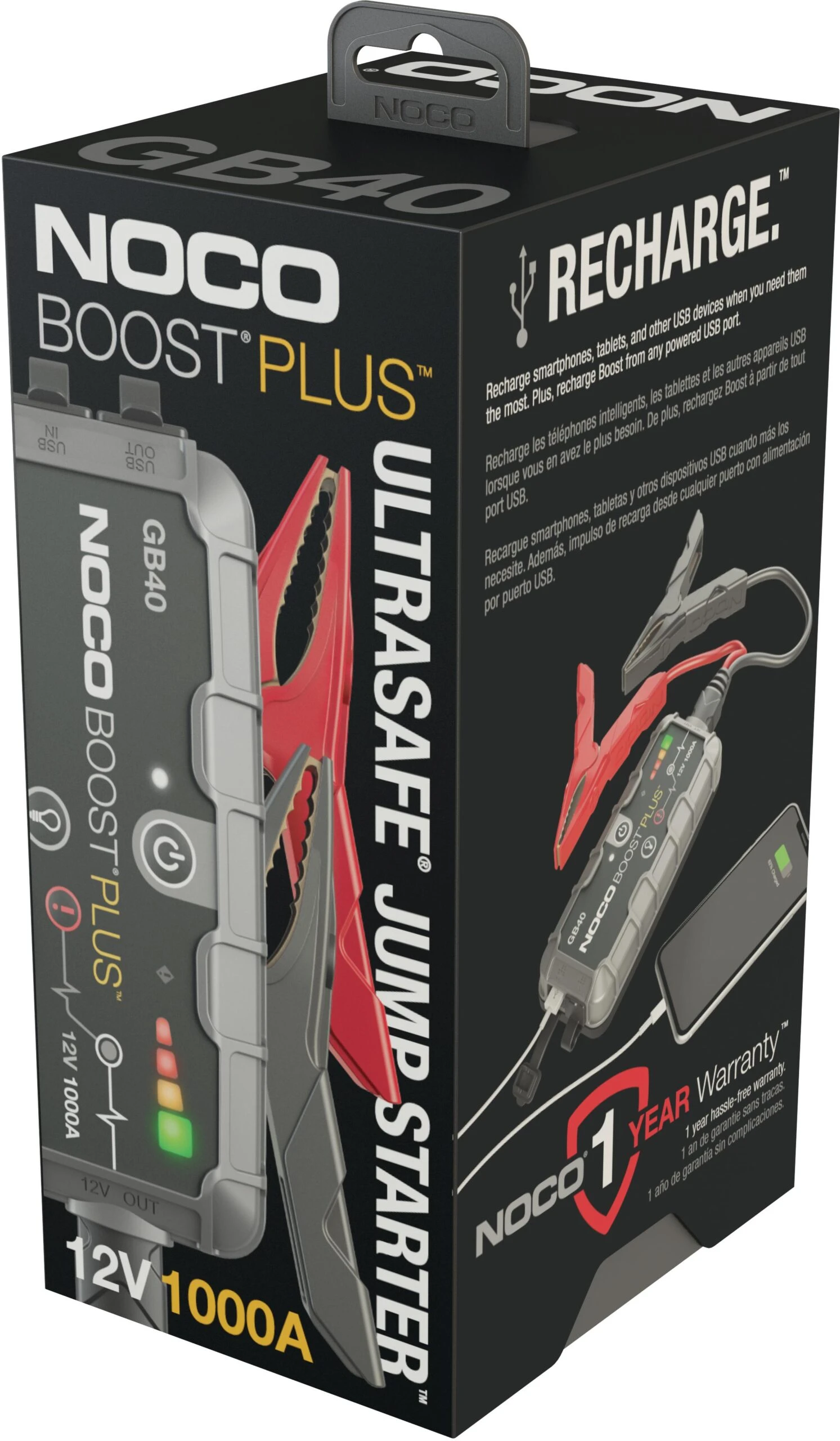 The NOCO GB40 1000A Jump Starter is a portable lithium-ion battery jump starter pack that delivers 1000-amps (7,000 J3S) for jump starting a flat battery in seconds.