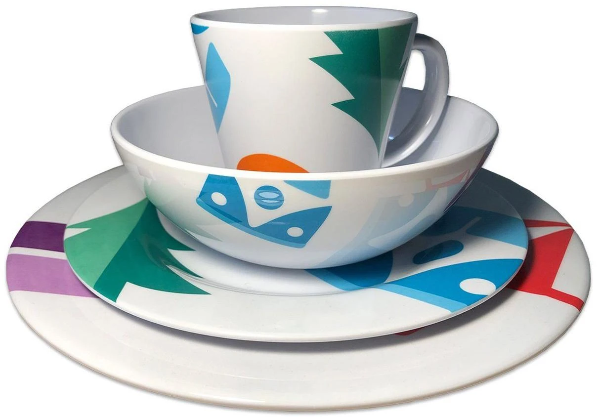 The sun is always shining in Spring Bay! Our bright, fresh and cheerful new design features an iconic VW Split Screen camper van print, with surfboards, parasols, flip flops and the OLPRO tree. A sure-fire hit with VW fans.This is a unique design for people who are looking for the best looking melamine set available. Using melamine as opposed to other plates, bowls and mugs means a lot less broken crockery when travelling and also stops accidents in the garden or out on campsites when people drop or knock over bowls, mugs or plates.