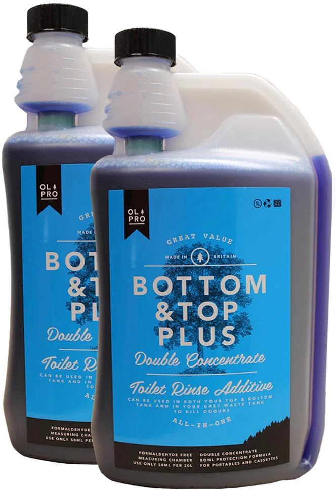 OLPro Bottom & Top Plus is a double concentrate product and comes in a handy measuring container. Based on our award winning Bottom & Top – Bottom & Top works in both the top and the bottom tank of all cassette and portable toilets. It's Formaldehyde free and environmentally friendly so can be used on all Caravan & Camping & Caravan club sites and even on inland water ways. It's high strength kills all bacteria in both the top and bottom tank and breaks down waste quickly. It also protects the moving parts within the toilet and ensures the bowl remains clear and free from bacteria.