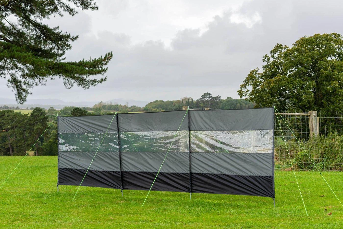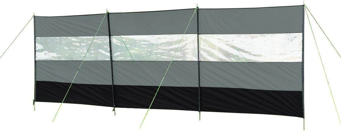 Olpro Compact Windbreak with transparent panels perfect for added privacy and protection from the elements. Each pole is broken down into 3 sections which easily clip together and slide into the windbreak fabric sleeves. Guy ropes, Carry Bag and pegs included.