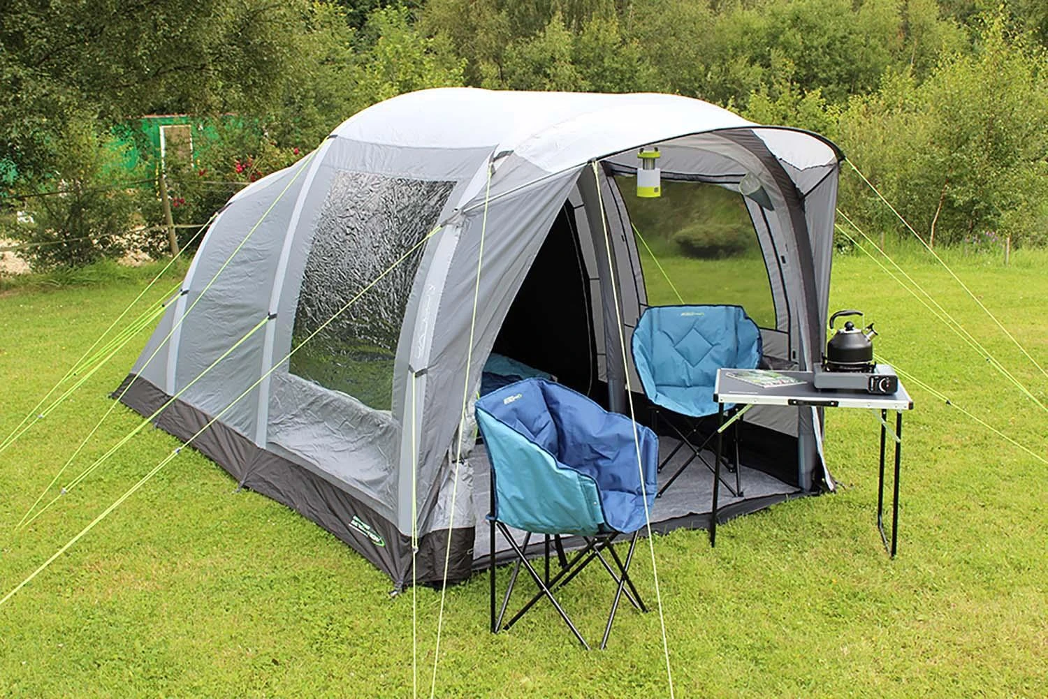 - The Camp star 350 comes complete with high visibility reflective guylines to reduce the risk of tripping, as well as a cable access point extending to the bedroom.