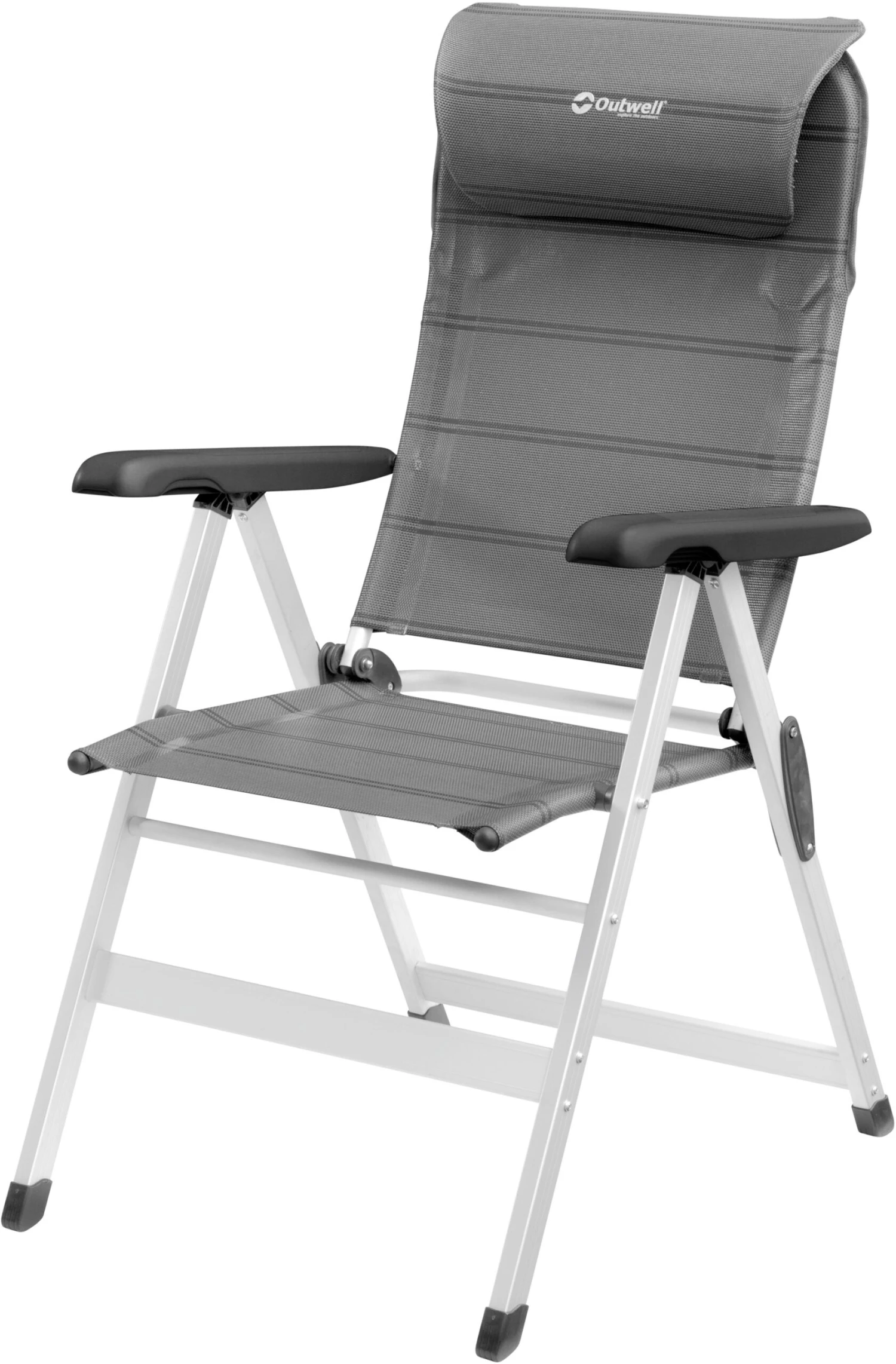 Understated style and quality – ergonomic seat design in textilene with a strong, light aluminium frame, the Outwell Milton Reclining Chair offer 7 different positions, adjustable and removable headrest and an ergonomic armrest design with easy grip. This chair will give you extra home from home comfort on the campsite, in your garden or on the terrace.
