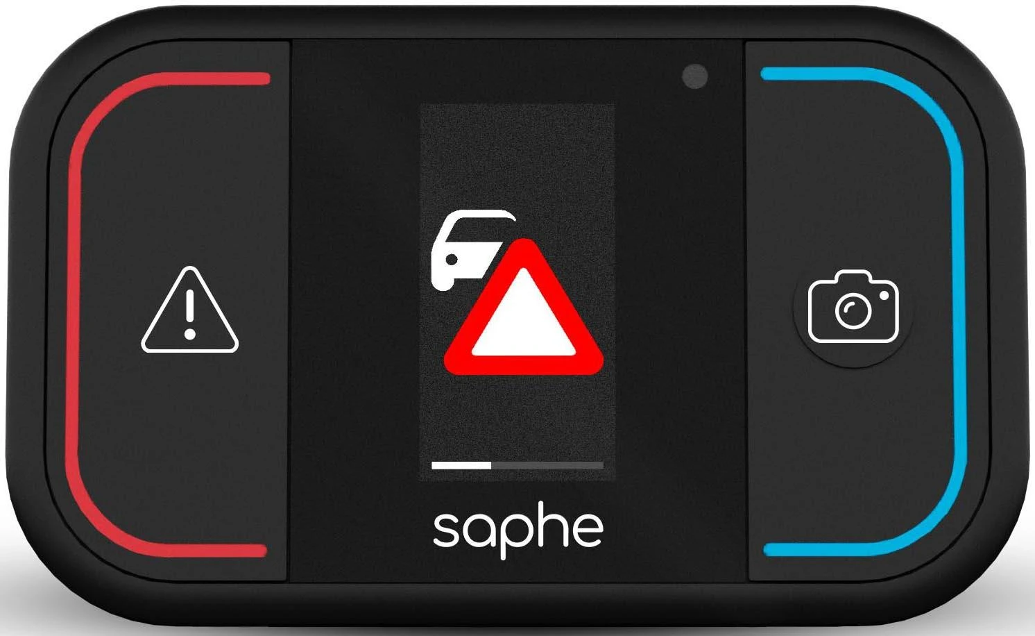 The display also indicates at start-up whether you are connected to the phone, how much power there is left on the device and the signal strength. Don’t worry, if one of the three should fall out, the Saphe Drive Mini will warn you. With a Saphe Drive Mini you will become part of one of the largest European traffic community consisting of 900,000 users, who shares traffic data very quickly and efficiently.
