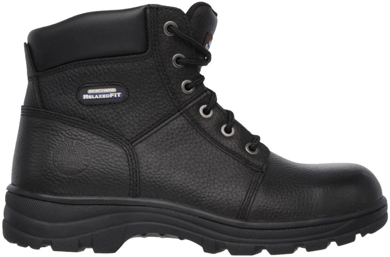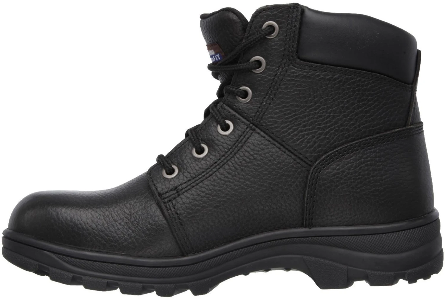 Workshire ST boot. Smooth full grain leather upper in a lace up steel safety toe ankle boot with stitching and overlay accents. Oil resistant traction rubber outsole. Memory Foam insole. EC Specific Edition.