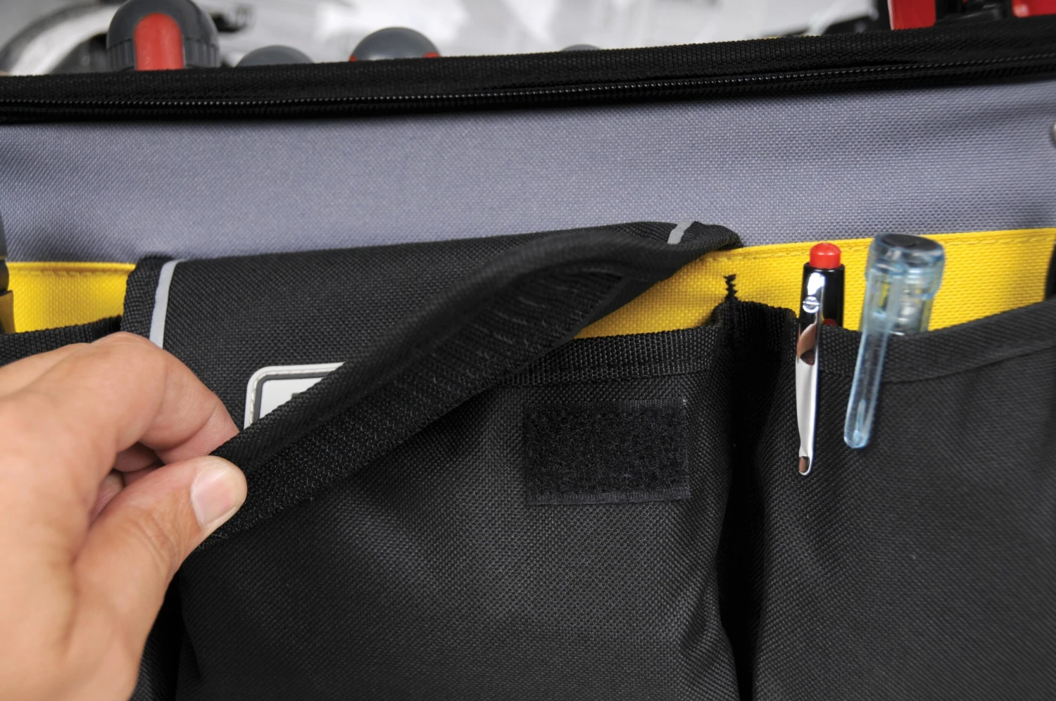 The Stanley 16″ Tool Bag is the perfect heavy duty bag for transporting your tools from job to job. Constructed from extra tough 600 x 600 denier fabric, this bag is designed for a longer life and will stand up to all worksite and weather conditions. With large side pocket for cables and wrenches this tool bag also contains with weather flap for mobile phone use, so feel rest assured you tools and possessions are dry and secure at all times.