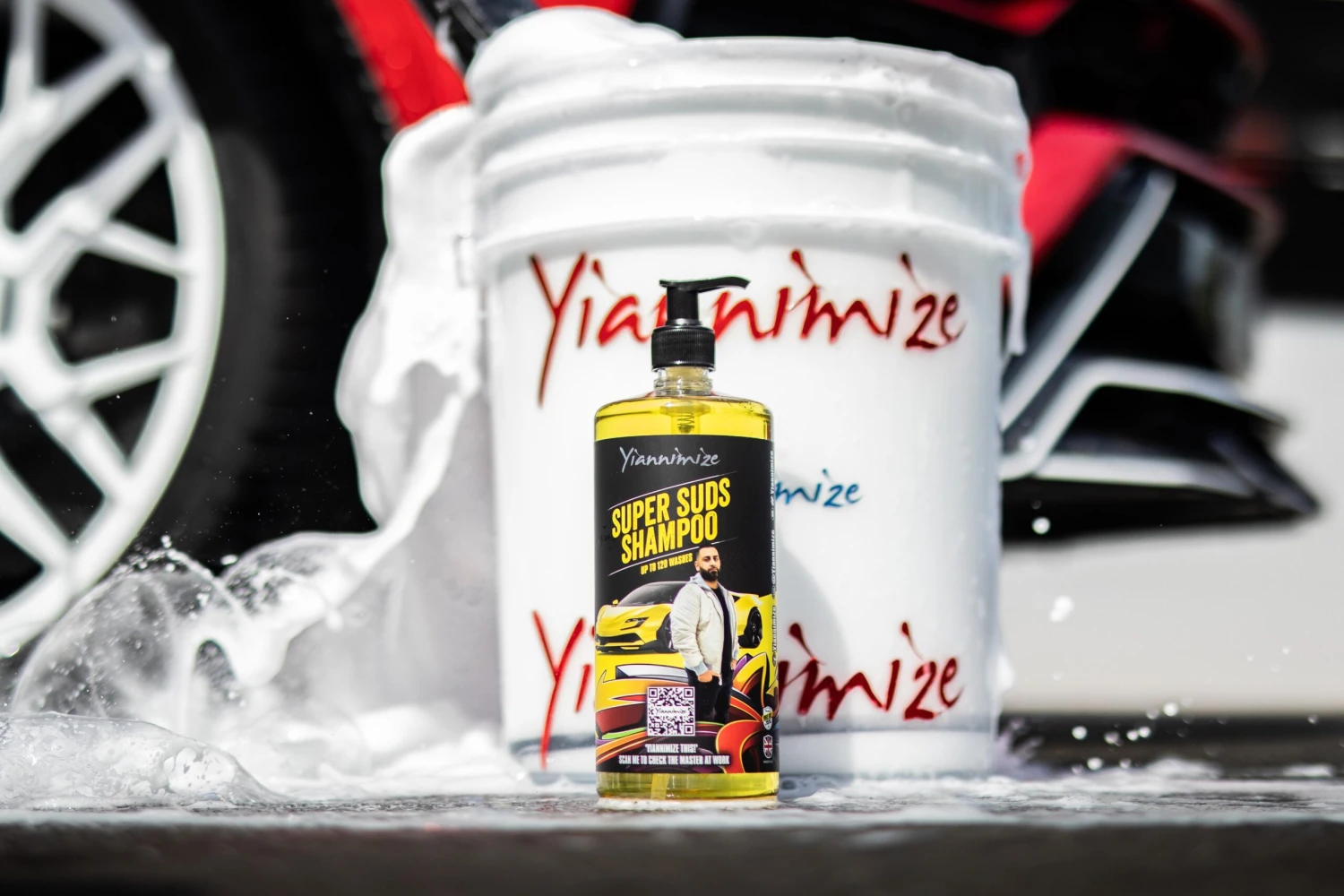 Yiannimize Super Suds Shampoo 1L, an ultra-luxurious, peak performance, super-high concentration shampoo that will make light work of cleaning your car; being tough on the heaviest dirt, and gentle on your paint/vinyl wrap. Possibly the best shampoo available on the market right now, with up to 120 washes.